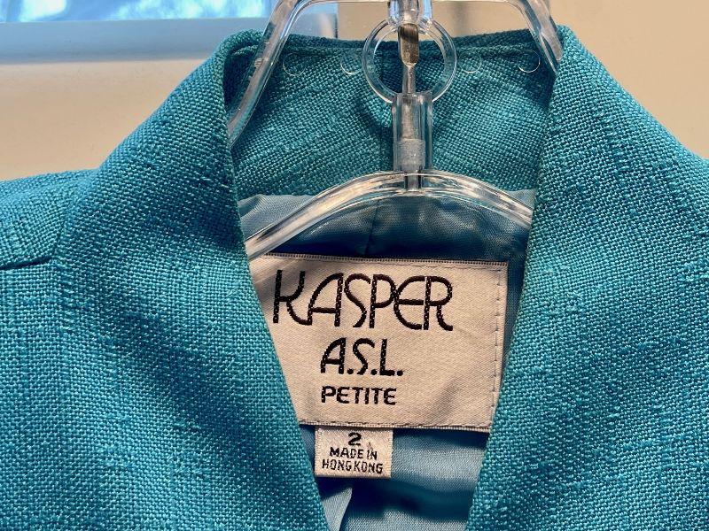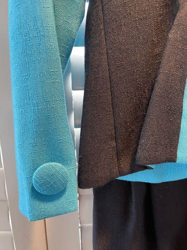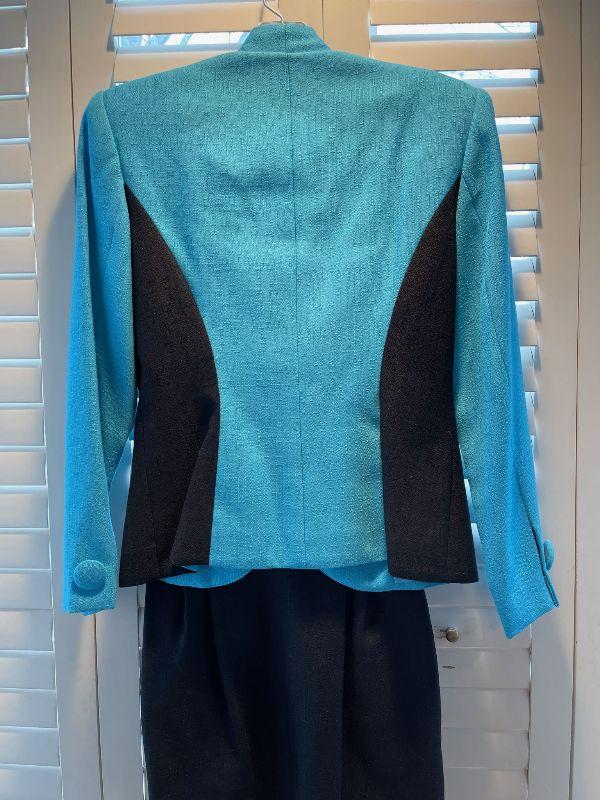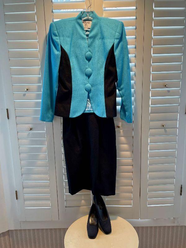 Great Vintage Look! Turquoise and Black 2 pc Suit skirt jacket Size 2