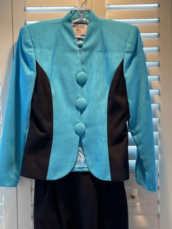 Vintage Turquoise and Black 2 pc Suit skirt jacket Size 2