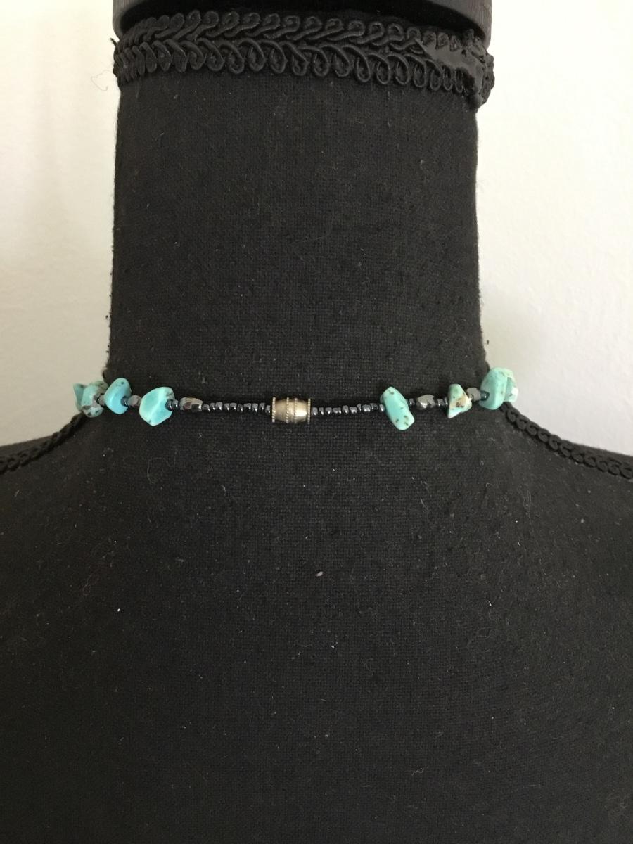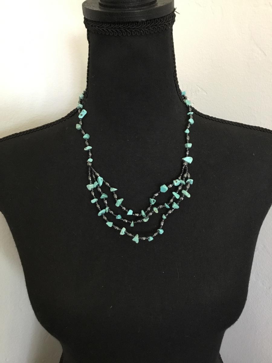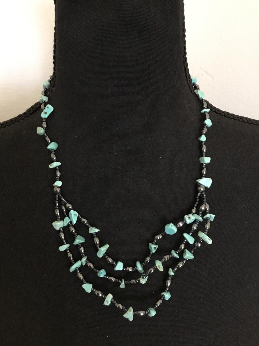 Vintage turquoise and hematite bead layered necklace barrel clasp