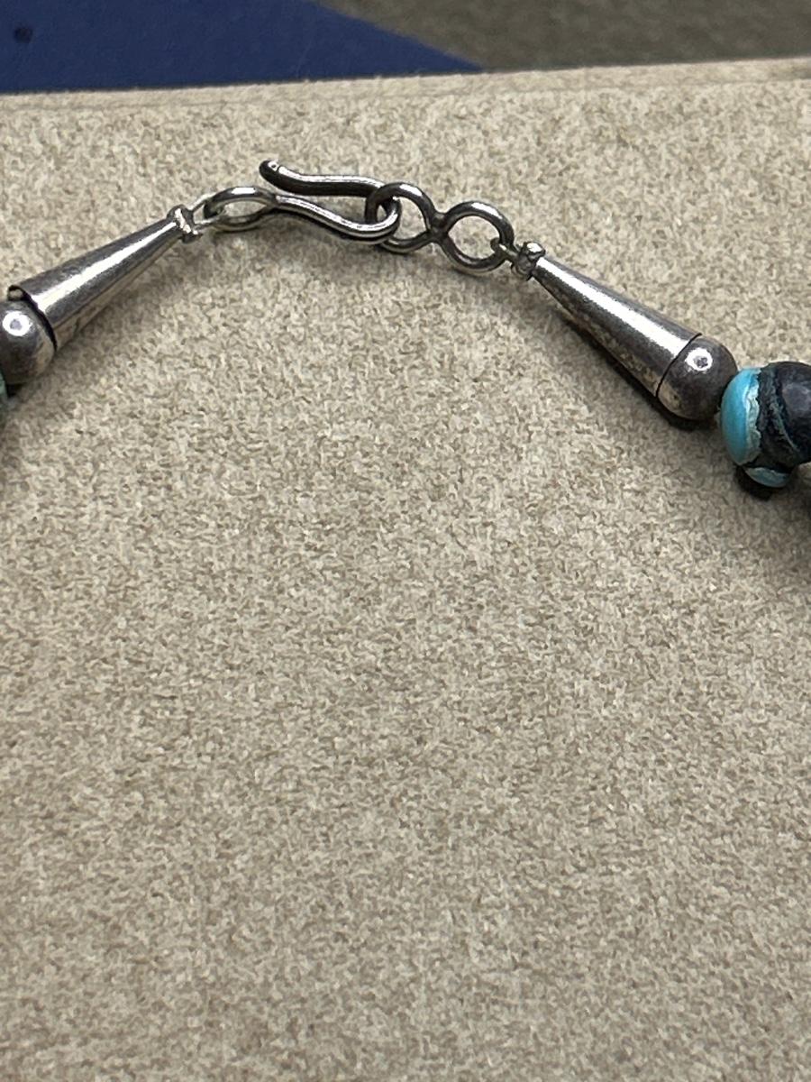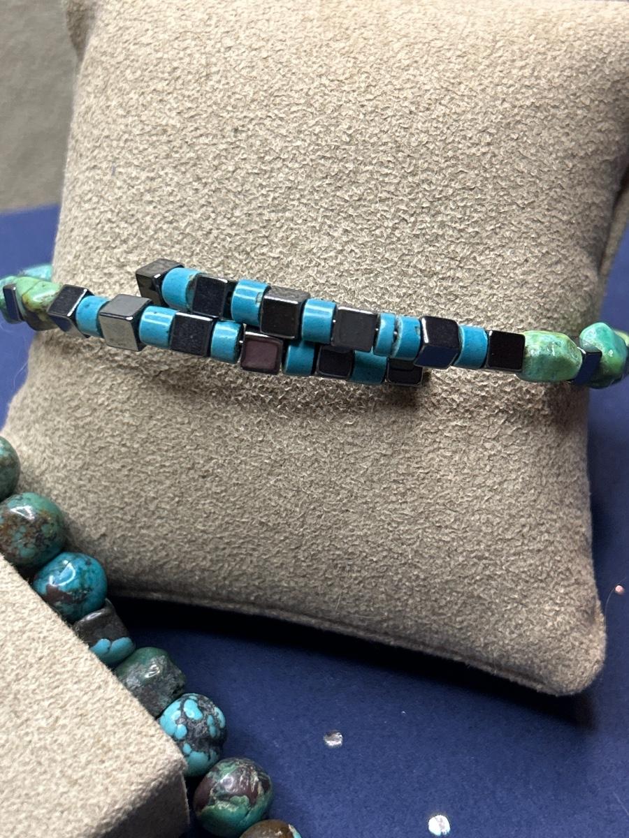 Clasps not stamped but I think it’s sterling. The cute bracelet is hematite, a bead & Gaspeite.