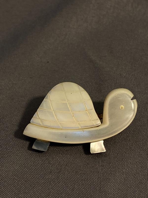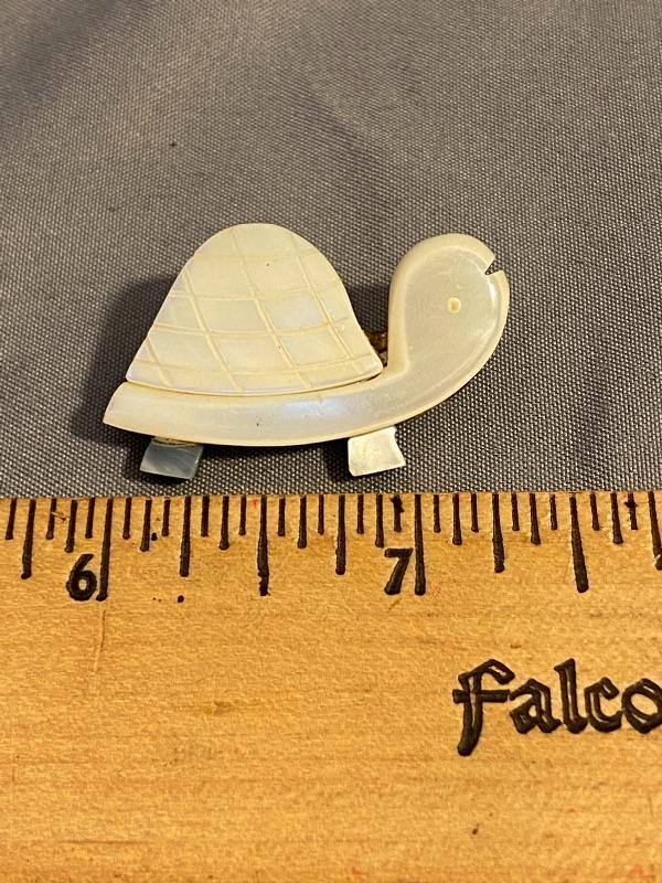 Cute vintage turtle pin. Carved from mother of pearl. Nicely done. Unbranded.