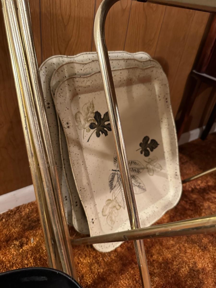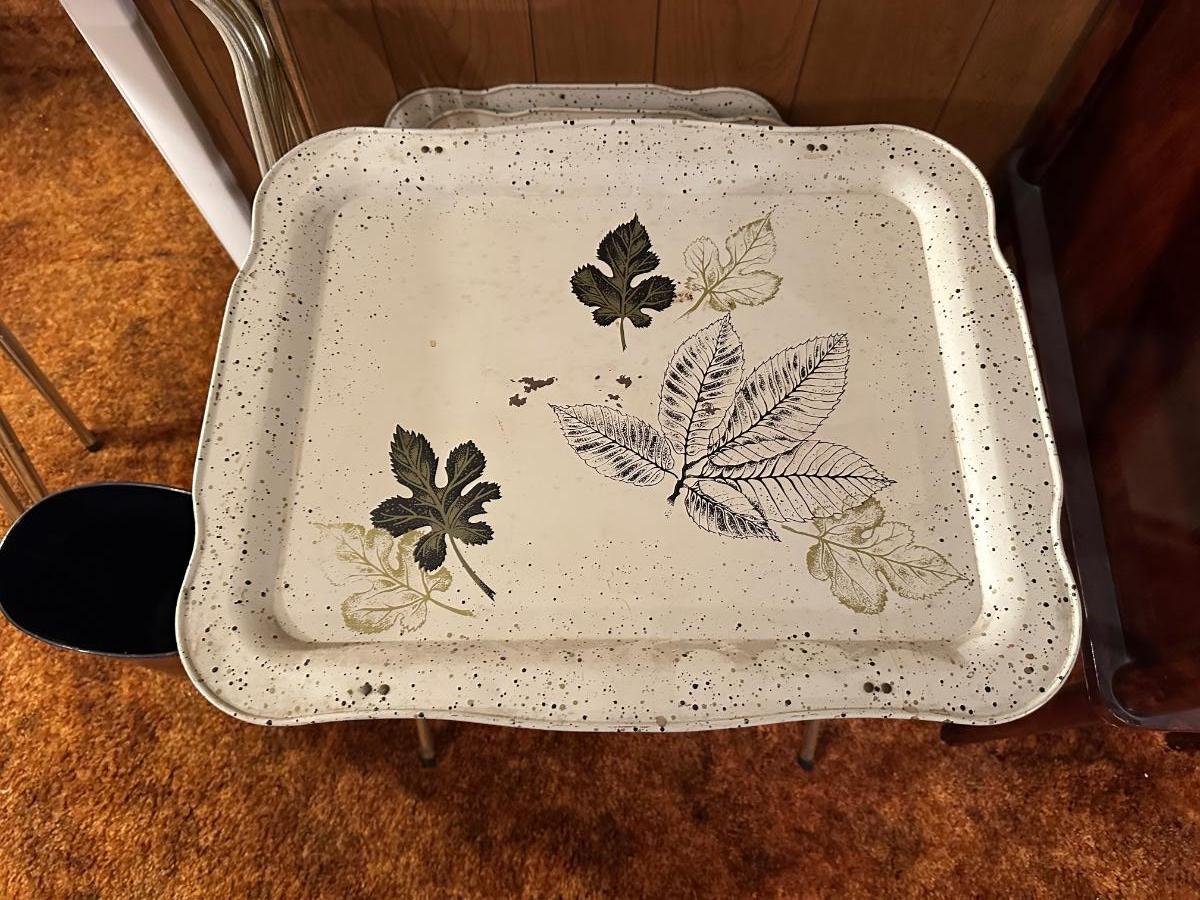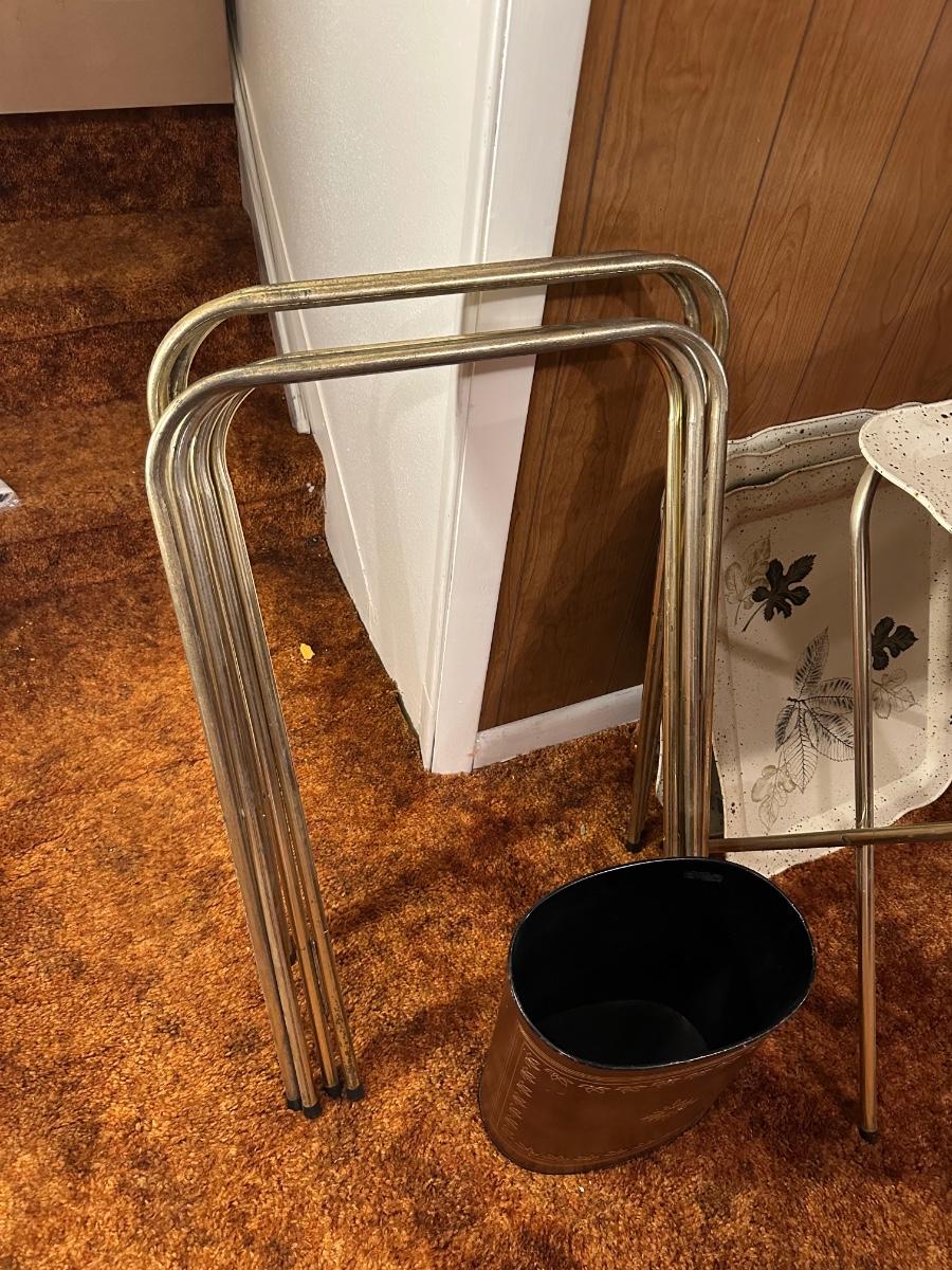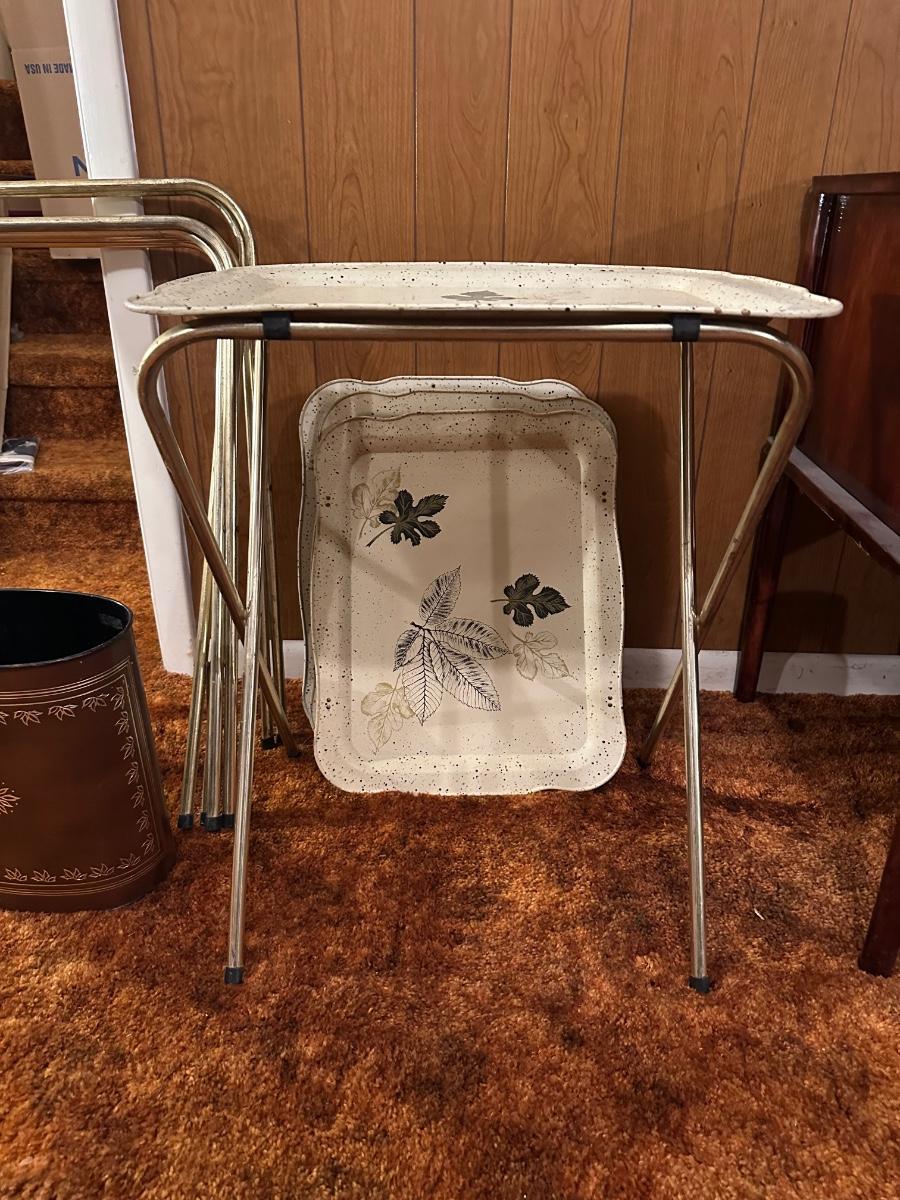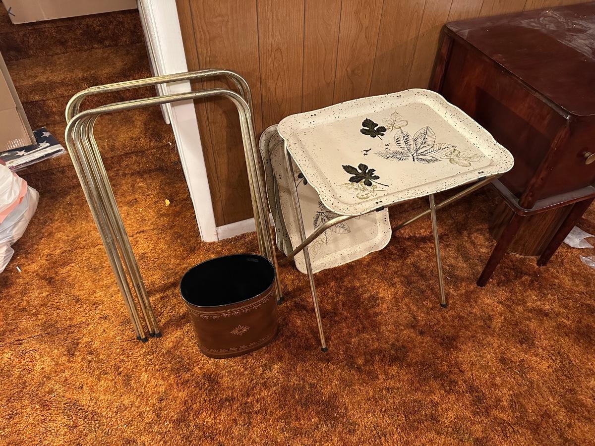 VINTAGE TV TRAYS AND WASTE BASKET