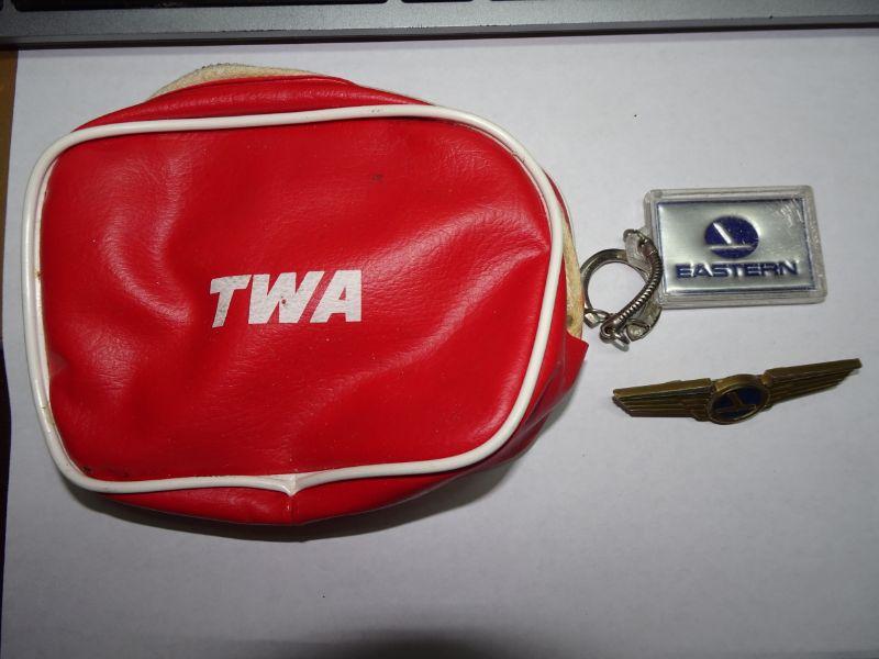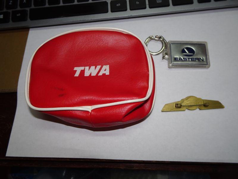 Vintage TWA Airline Collectibles, Wings, Key Ring, Small Change Purse