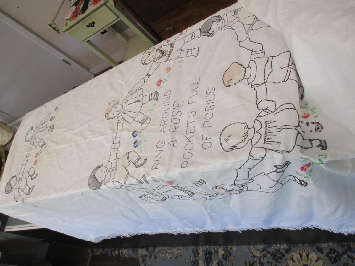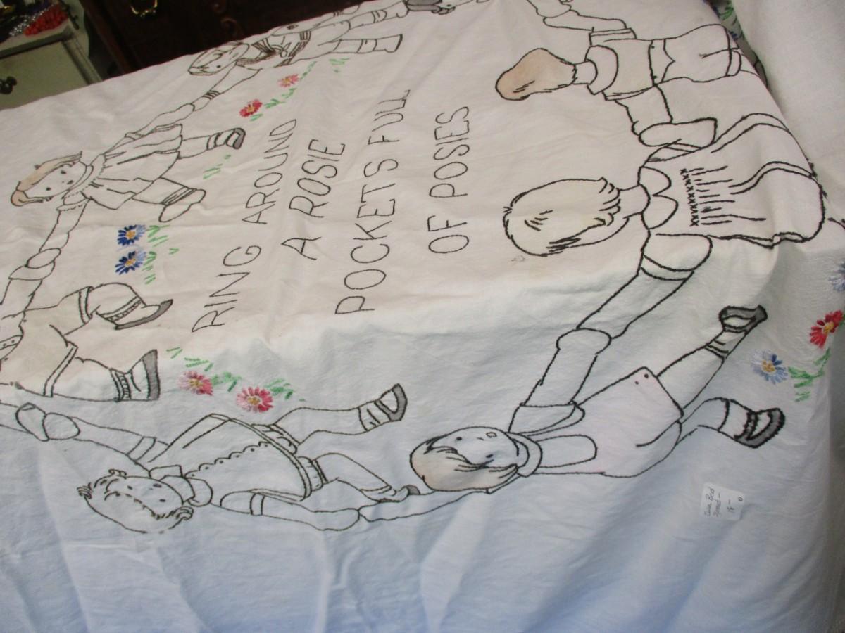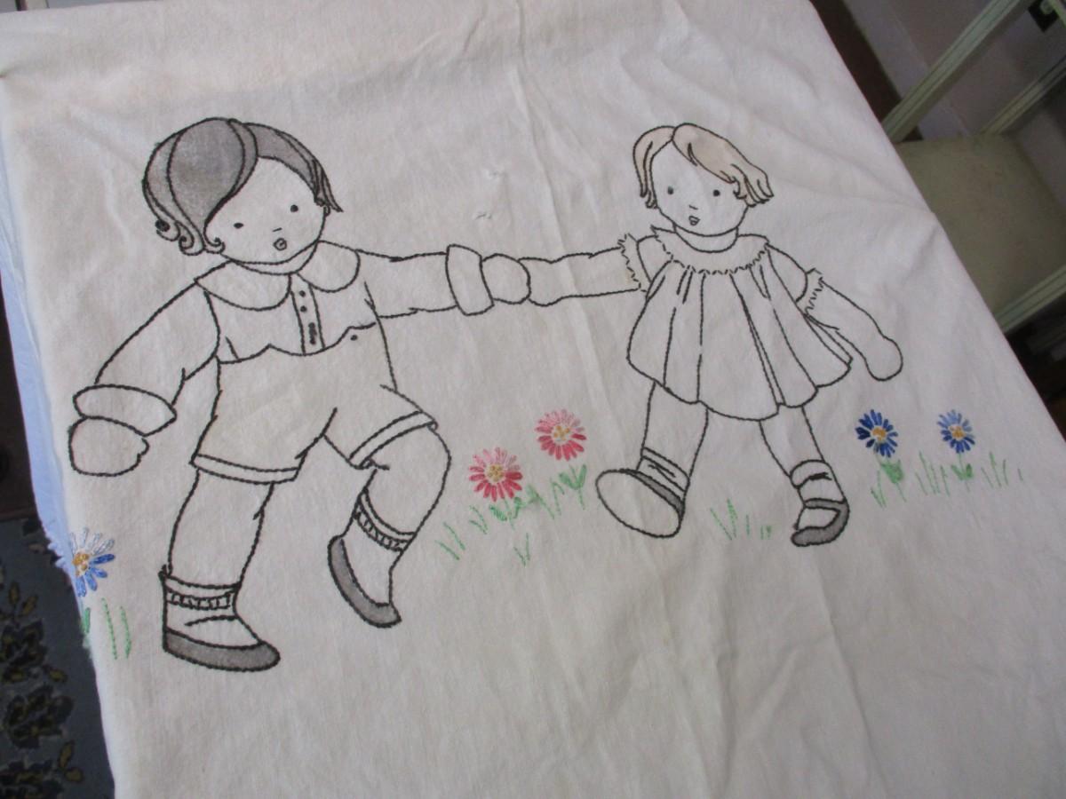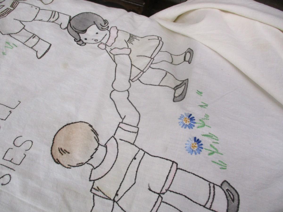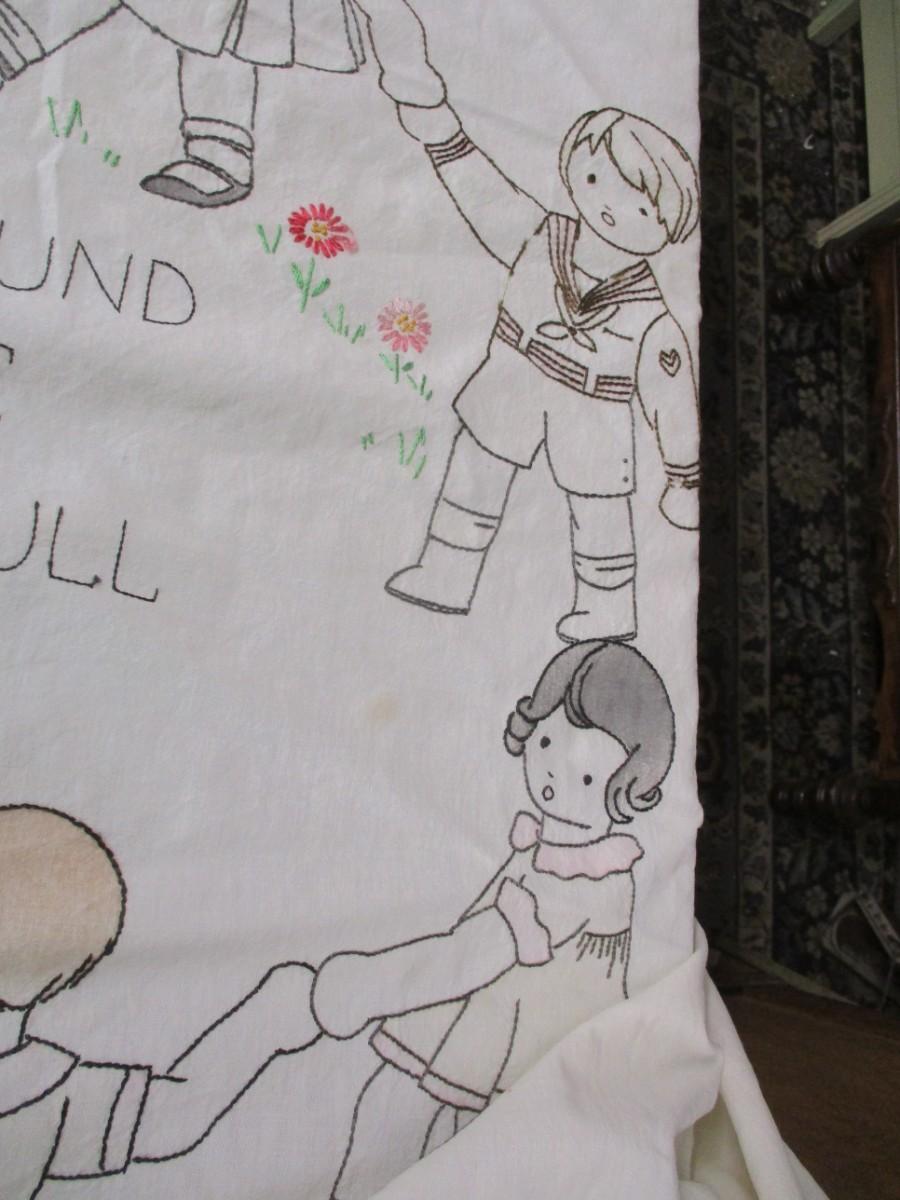 Vintage Stitched Children at Play Twin Bed Spread - F