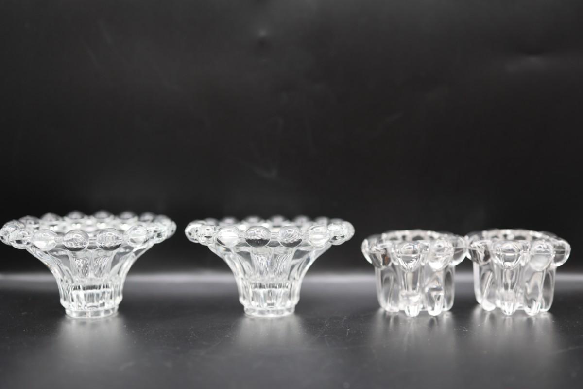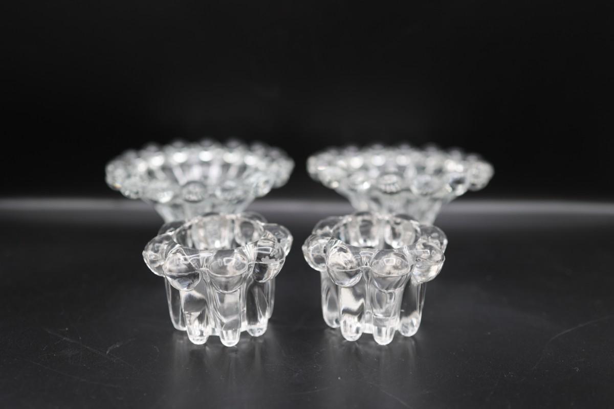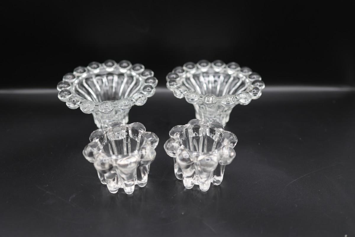Vintage Two Pair of Clear Glass Candle Holders