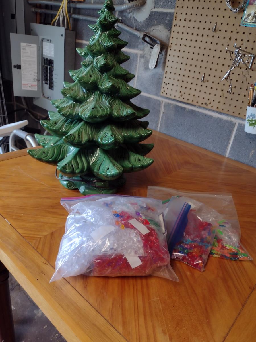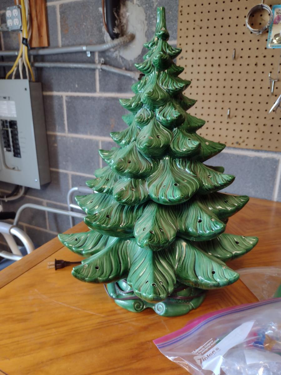 Vintage Two Piece Ceramic Christmas Tree with Bulbs- Approx 21" Tall