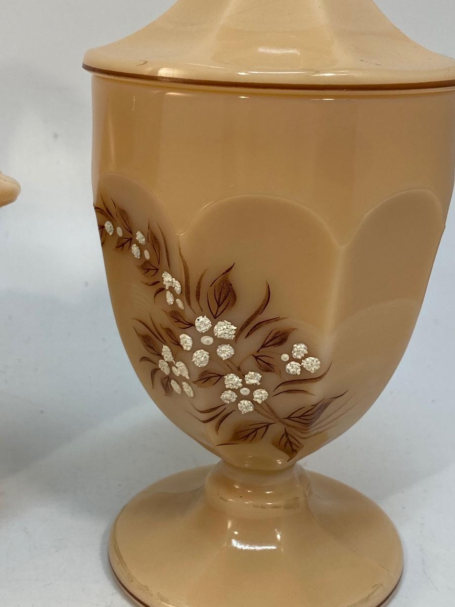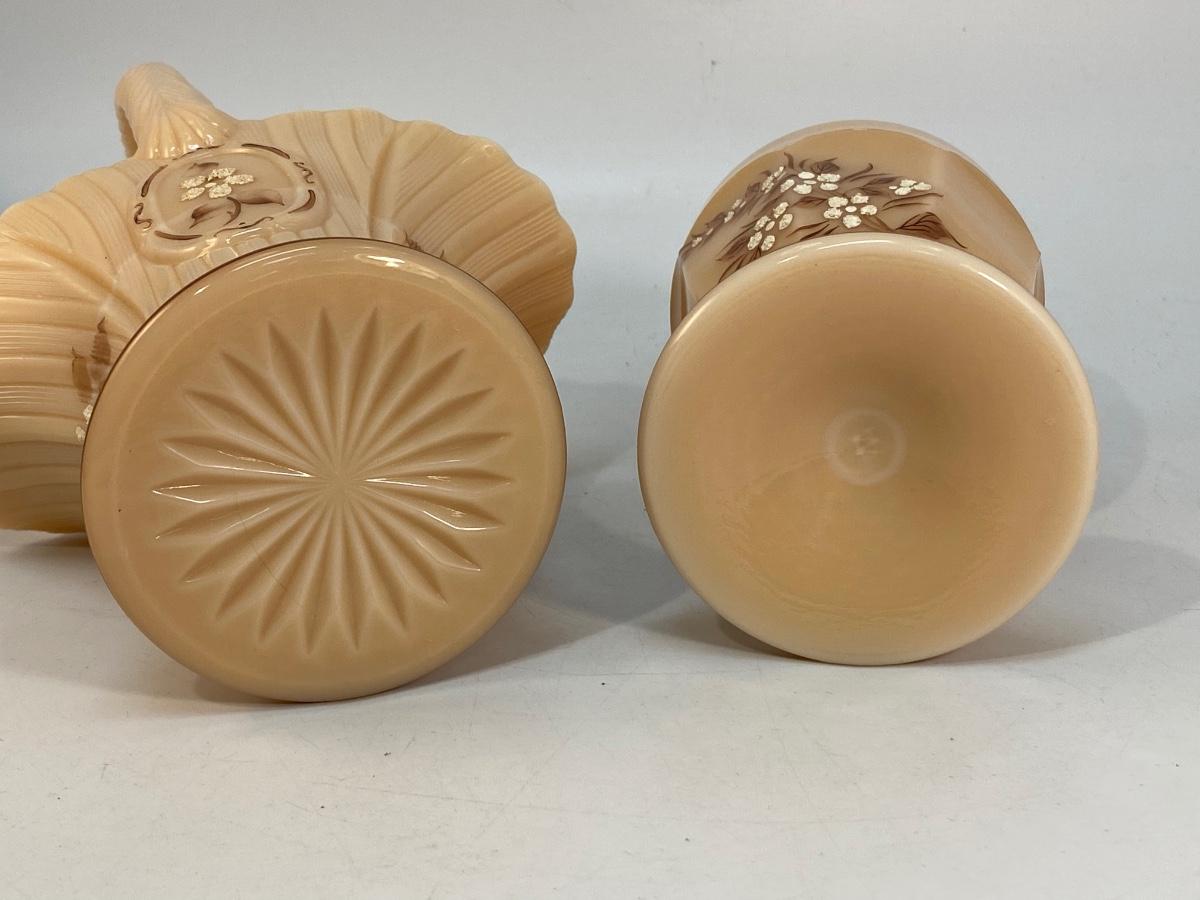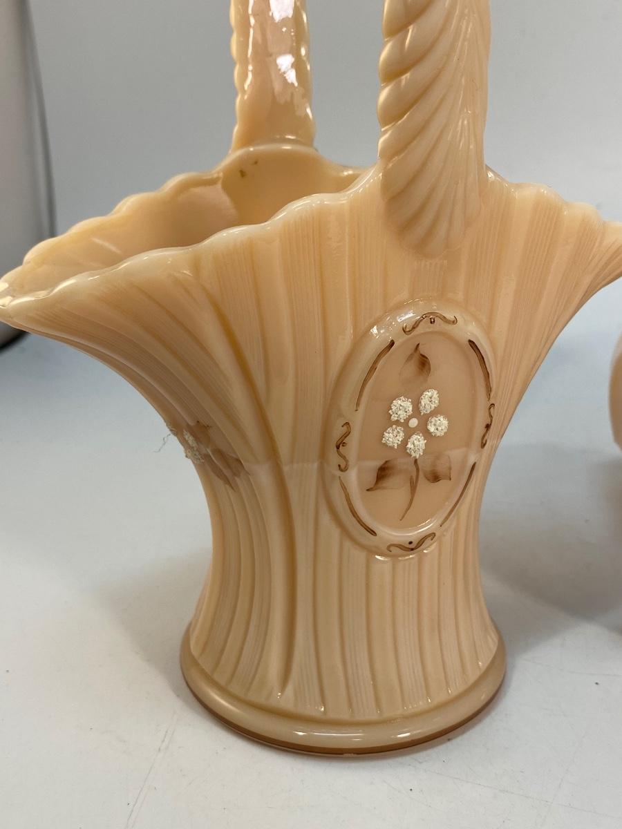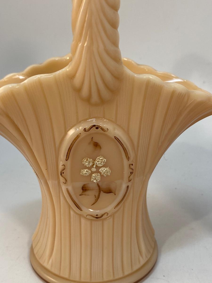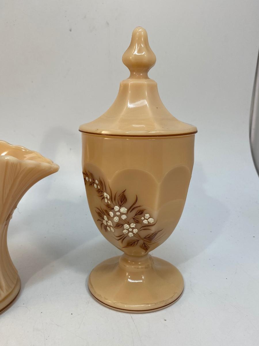 Vintage Two Piece Set Westmoreland Almond Glass Bridal Basket Lidded Apothecary Candy Dish
