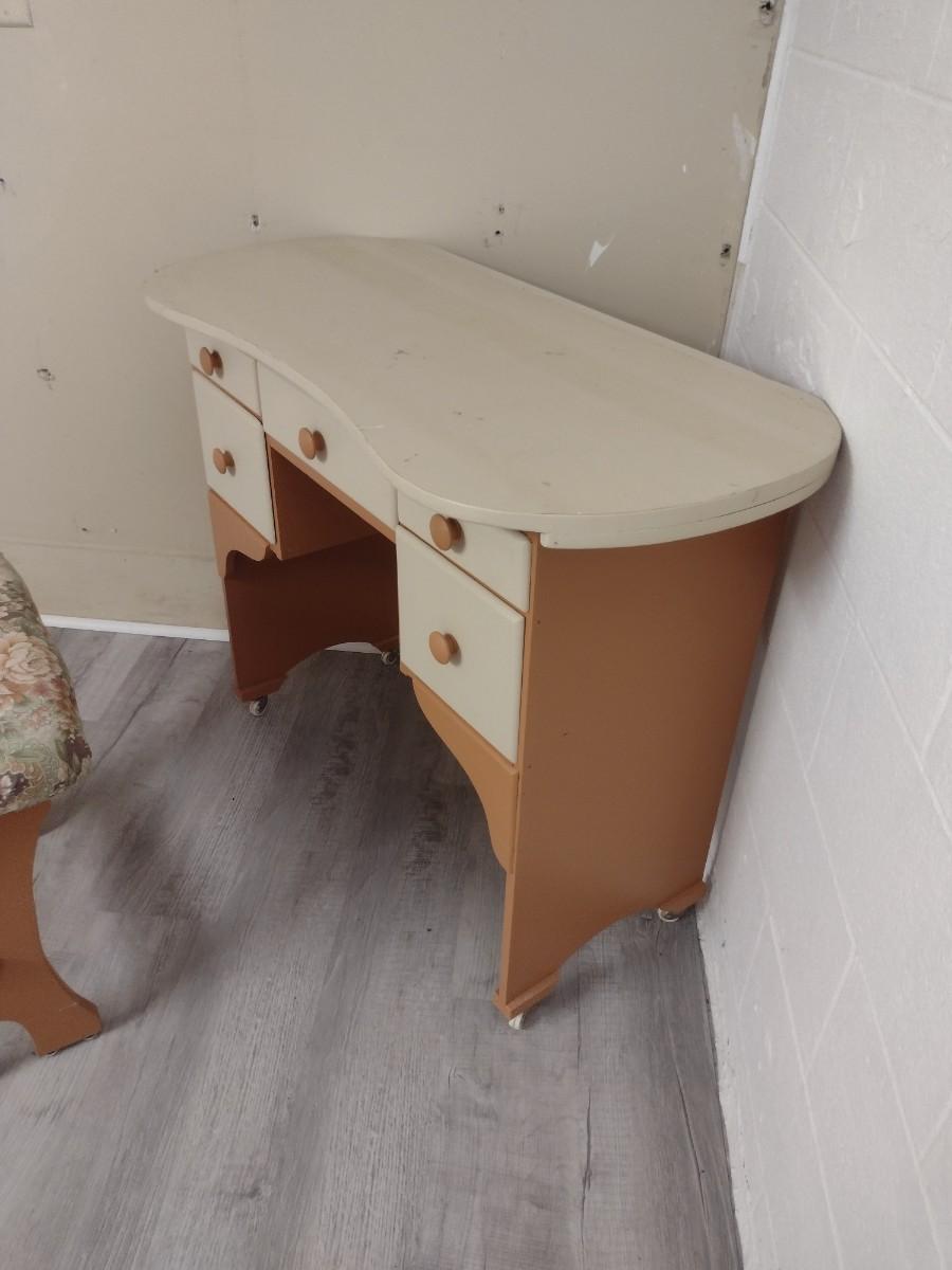 Vintage Two Tone Desk/Dressing Table with Bench.