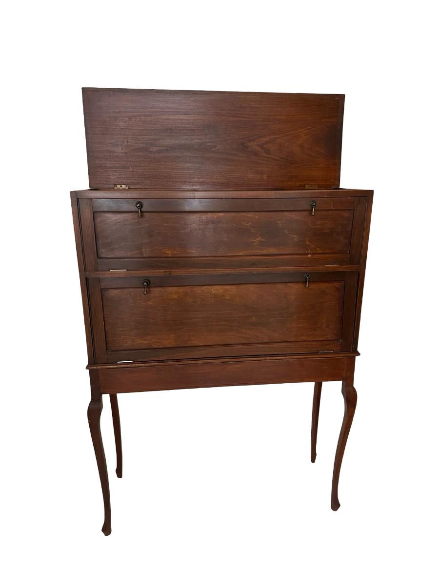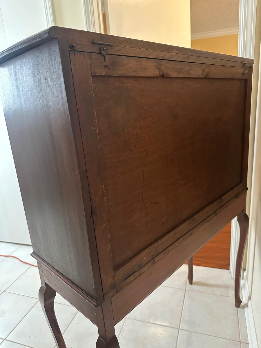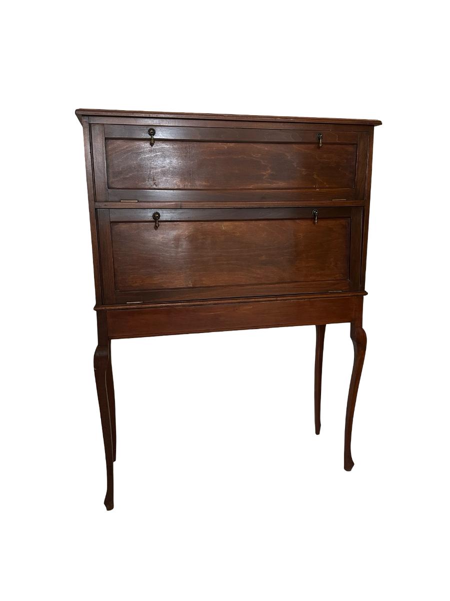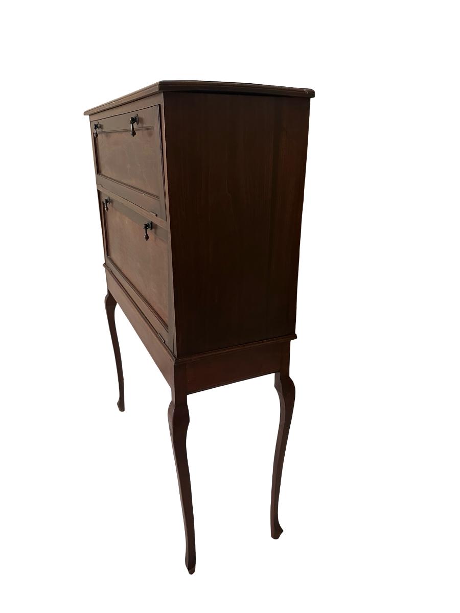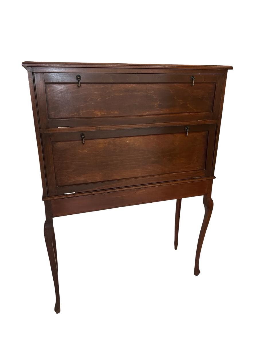 Vintage Two-Tier Drop-Front Wood Cabinet on Cabriole Legs