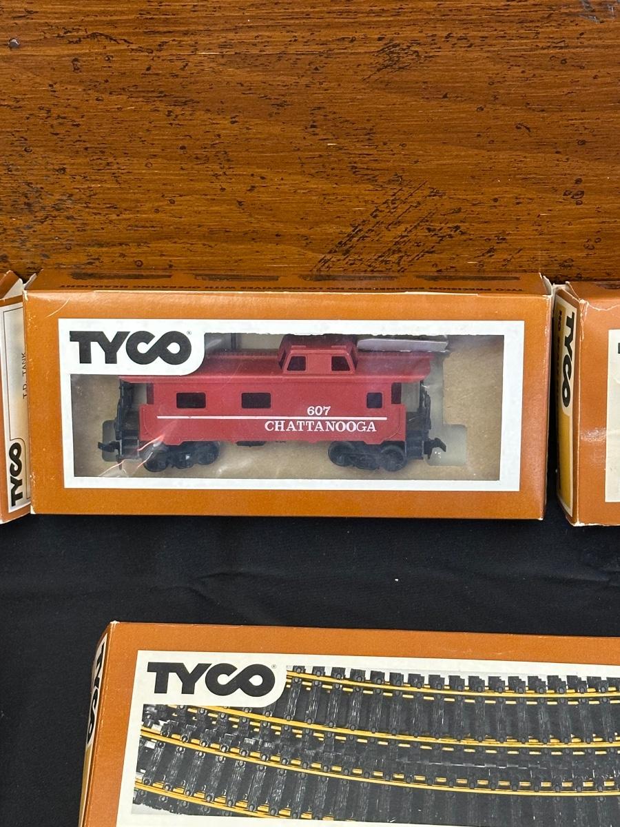 A great tyco train set including TD Tank Gulf, 8 Wheel Caboose Chattanooga, Operating Crane with Boom Tender and More! The wiring for this set has not been tested.