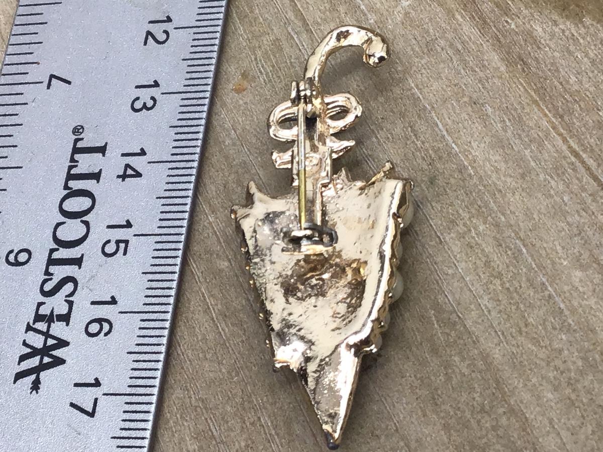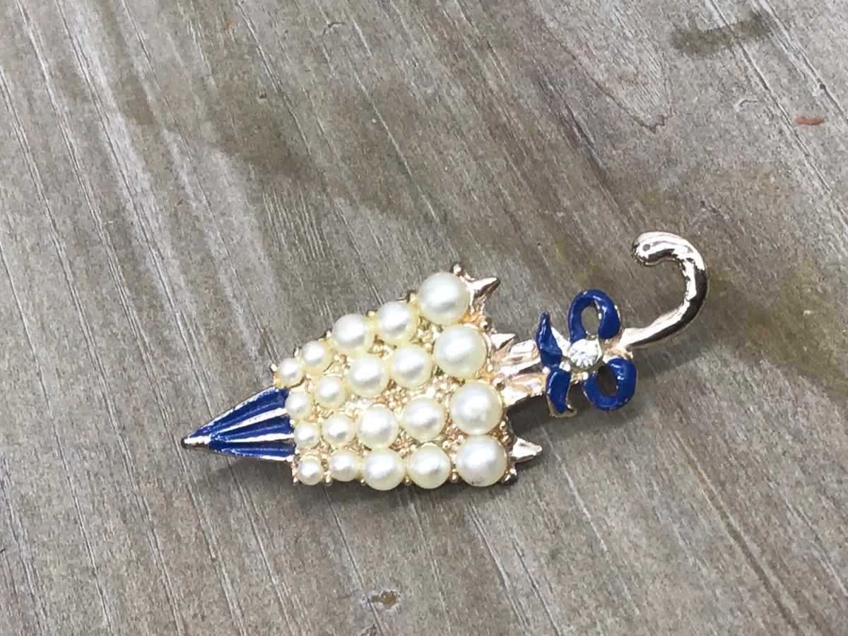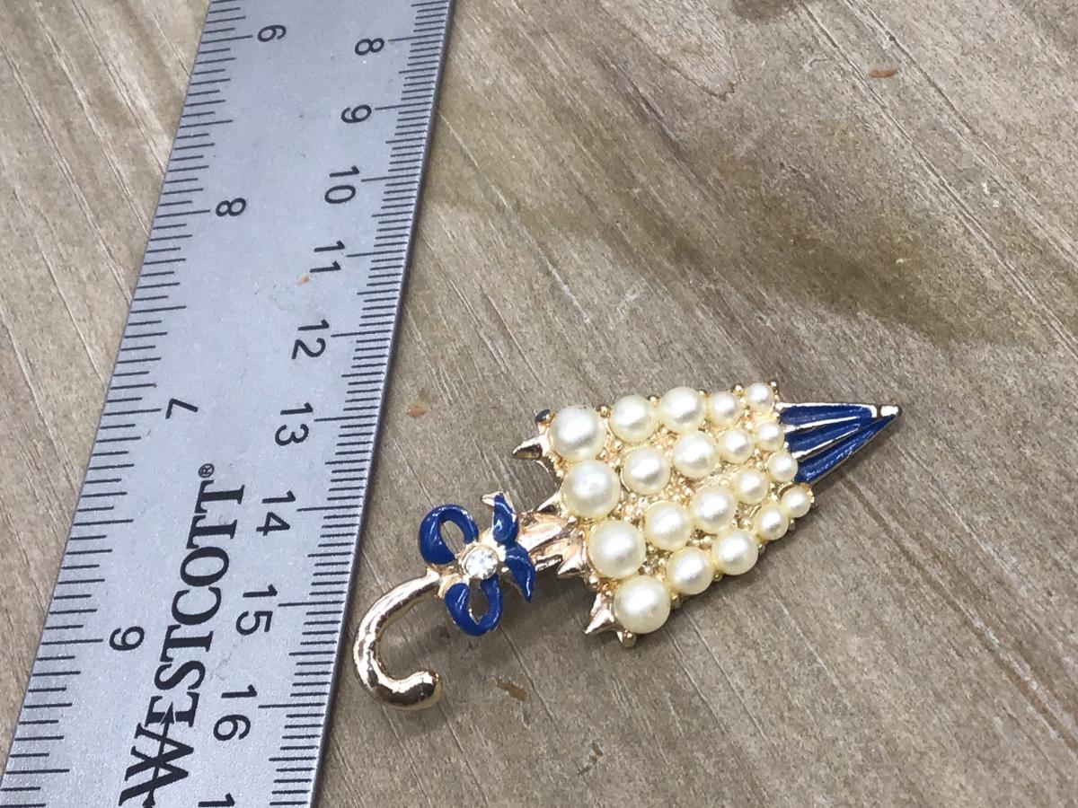 VINTAGE UMBRELLA BROOCH 1 RHINESTONE Blue ENAMEL GOLD TONE METAL