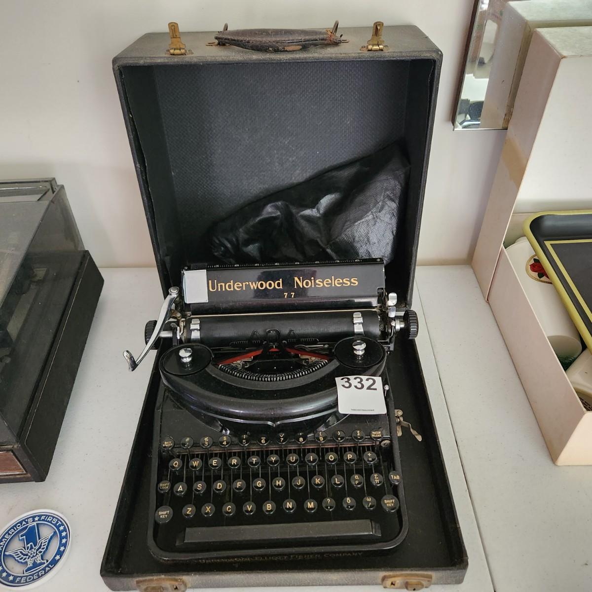 Vintage Underwood Noiseless  77 Typewriter with case & Cover Tested Working