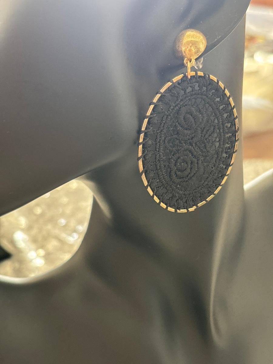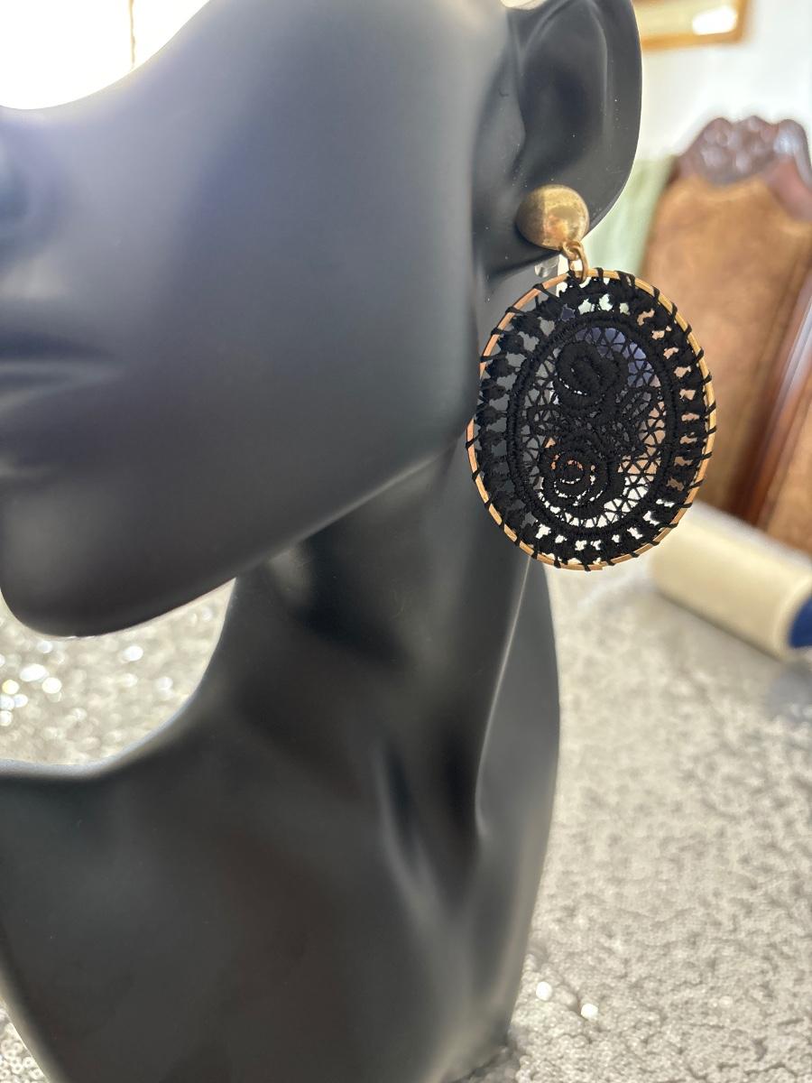 Vintage unique, Boho, crocheted, pendant, metal stud, drop earrings