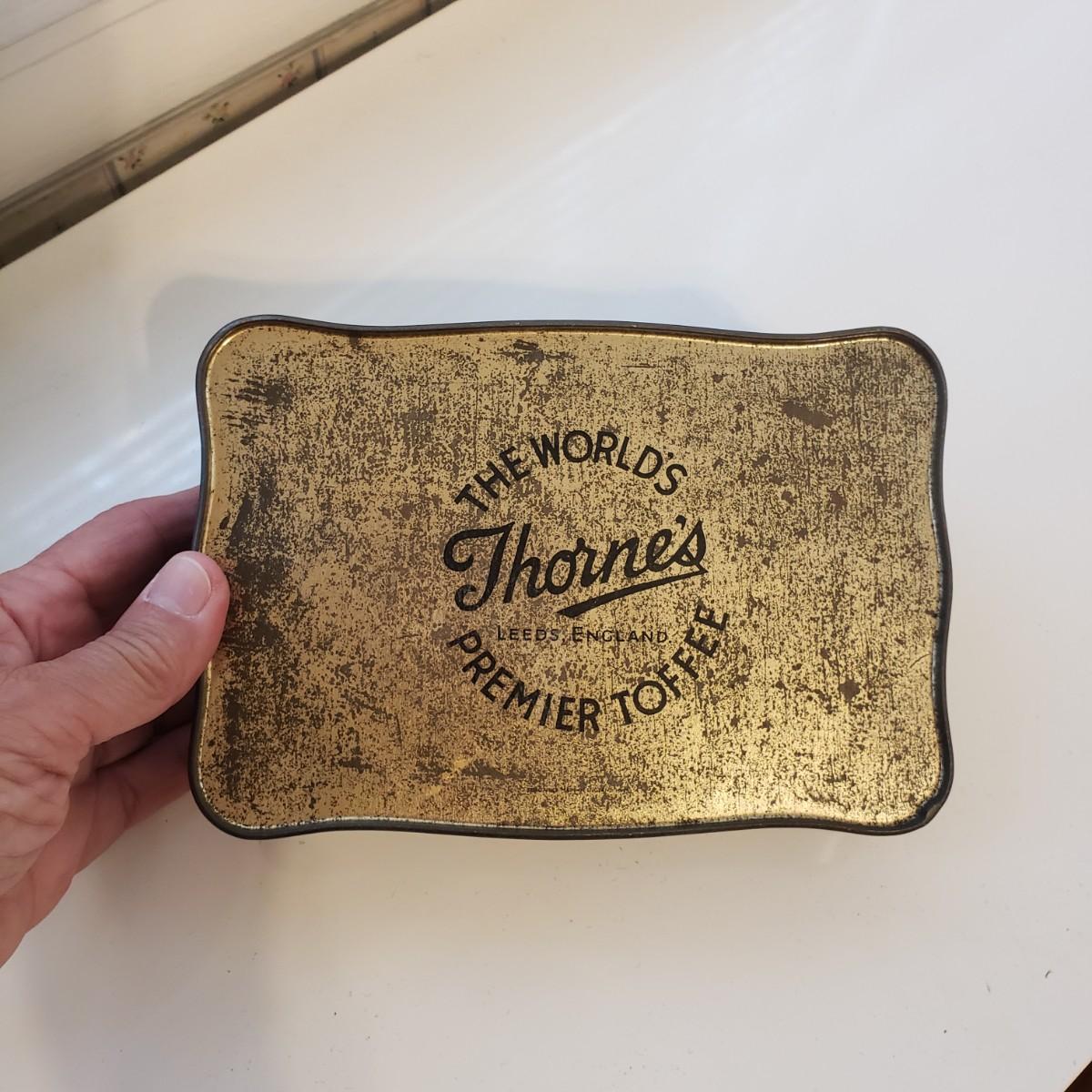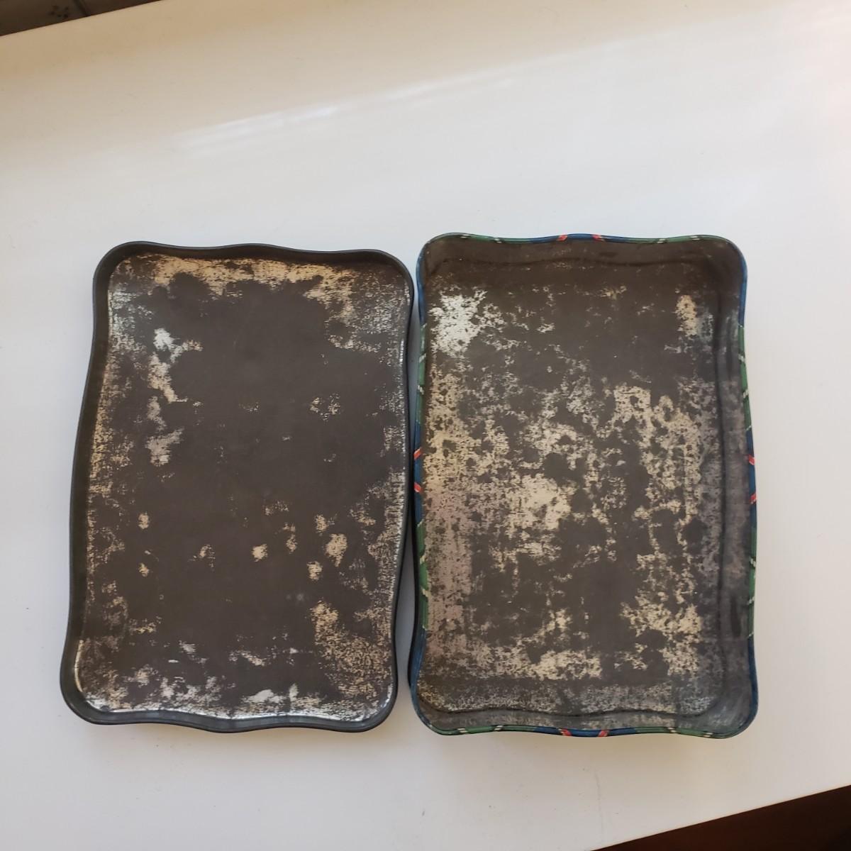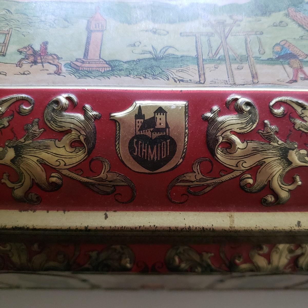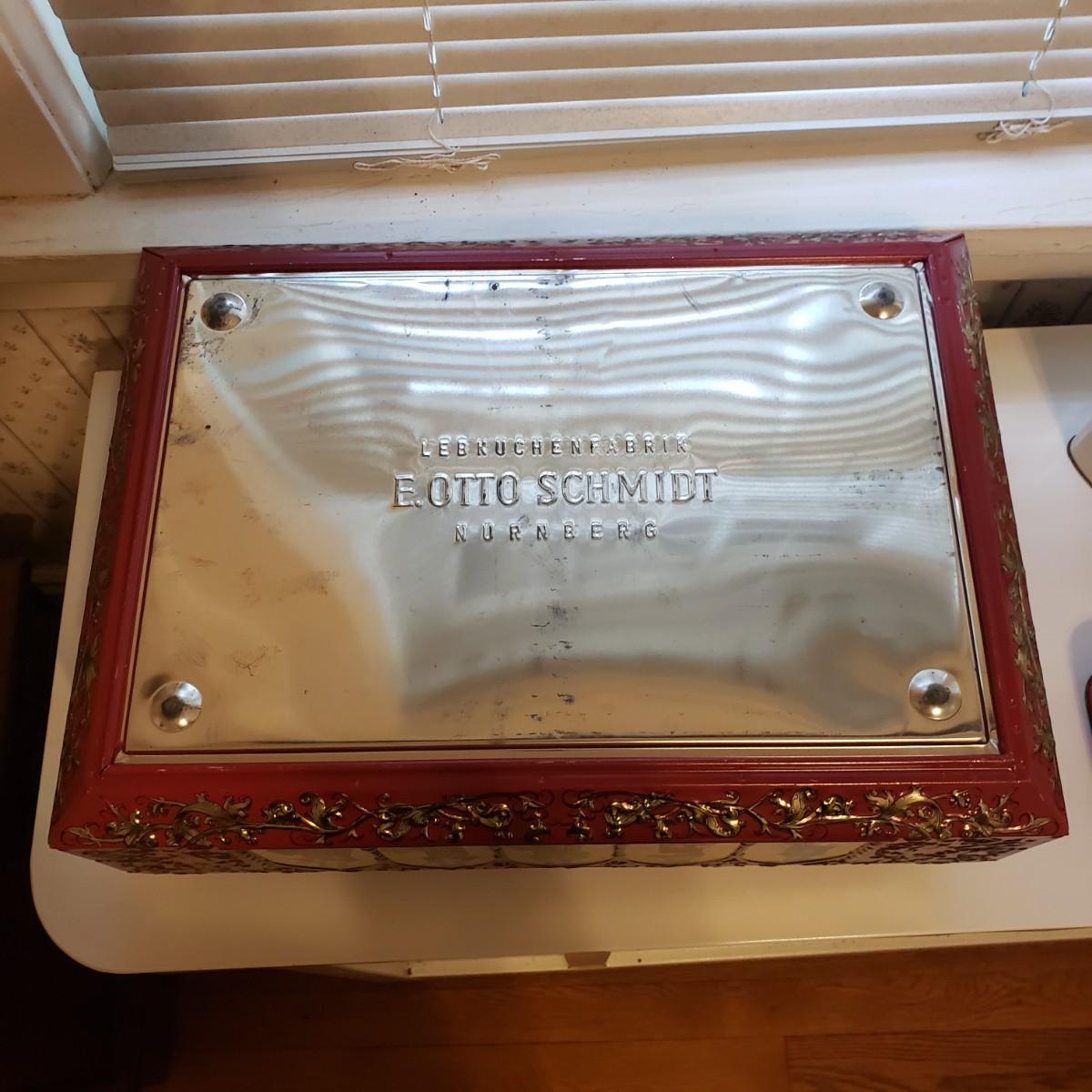 This five piece lot features tins from around the world! The large tin from Germany has amazing pictures on each side, with hardly any rust spots. This piece measures 17" x 12" x 7"H. The tins are in various conditions, see pictures for details. The English Tea tin is much heavier/thicker than the others.