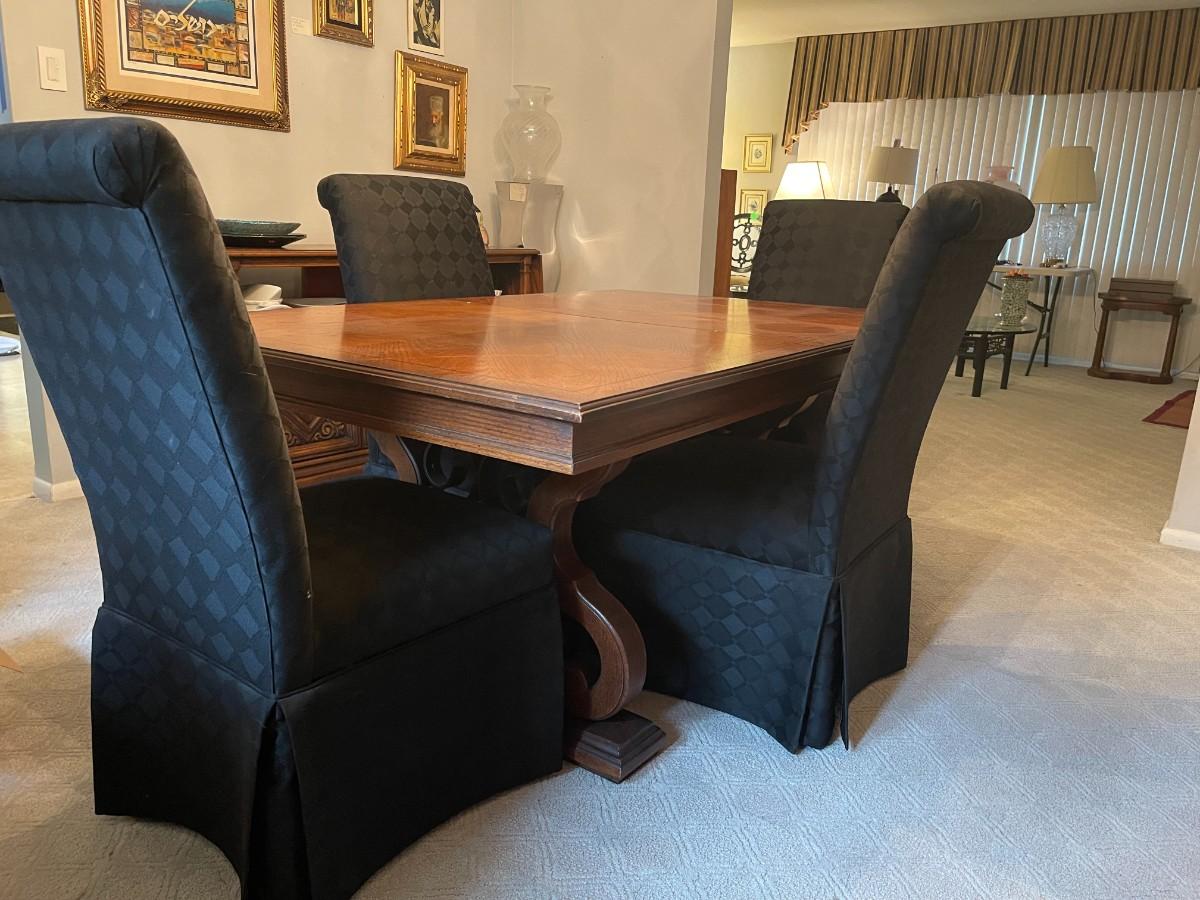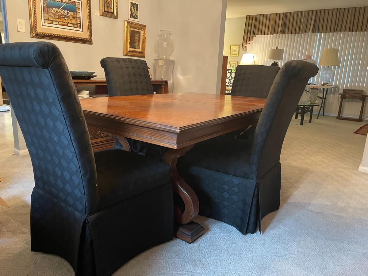 Vintage United Furniture Co Expansion Dining Table and 4 Parson Chairs