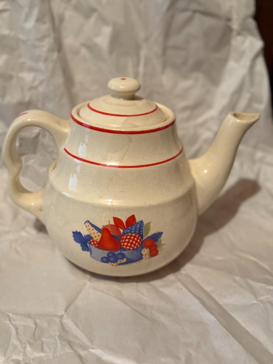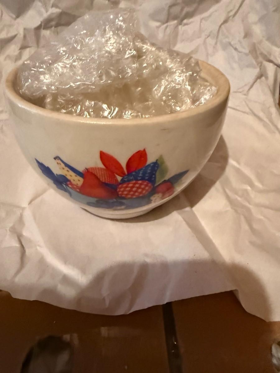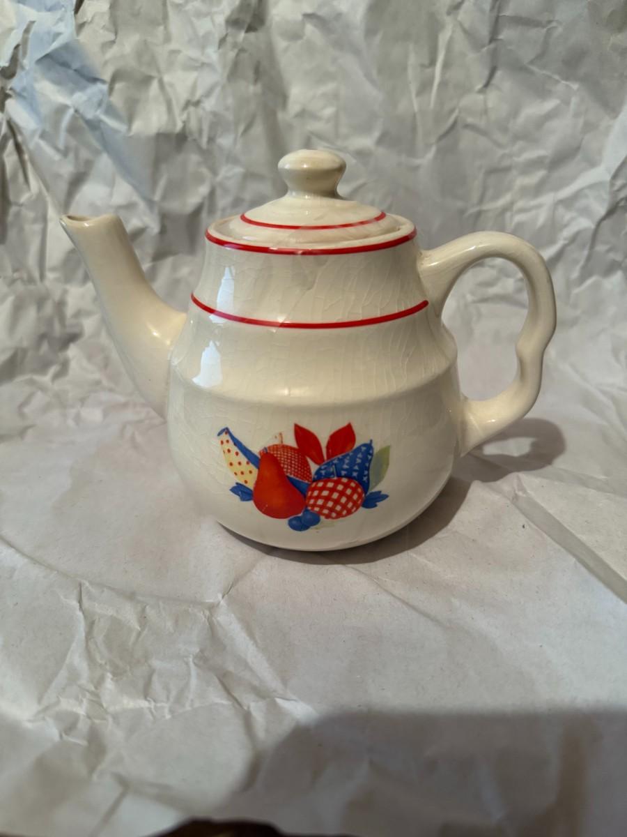 Vintage Universal Cambridge Calico Fruit 1946-1947 Lot: This delightful lot features vibrant calico fruit designs from 1946-1947, perfect for collectors of vintage tableware and those who appreciate classic designs.