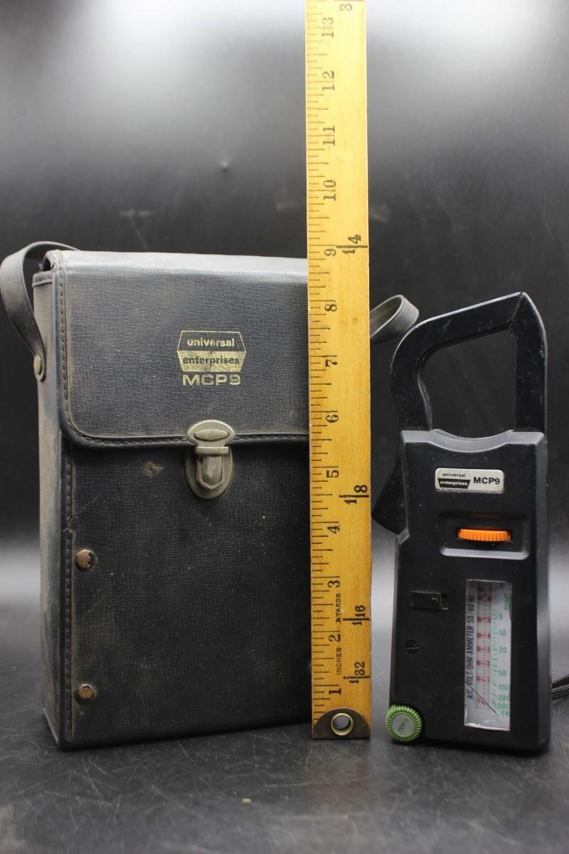 Vintage Universal Enterprises MCP9 Clamp-on Multimeter With Probes and Case, there is no significant damage to the multimeter and is in overall fair condition. Has not been tested, check pictures for more details and for sizing.
