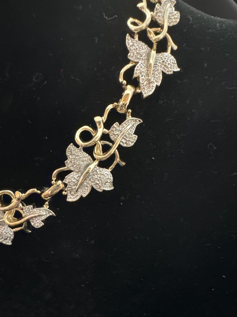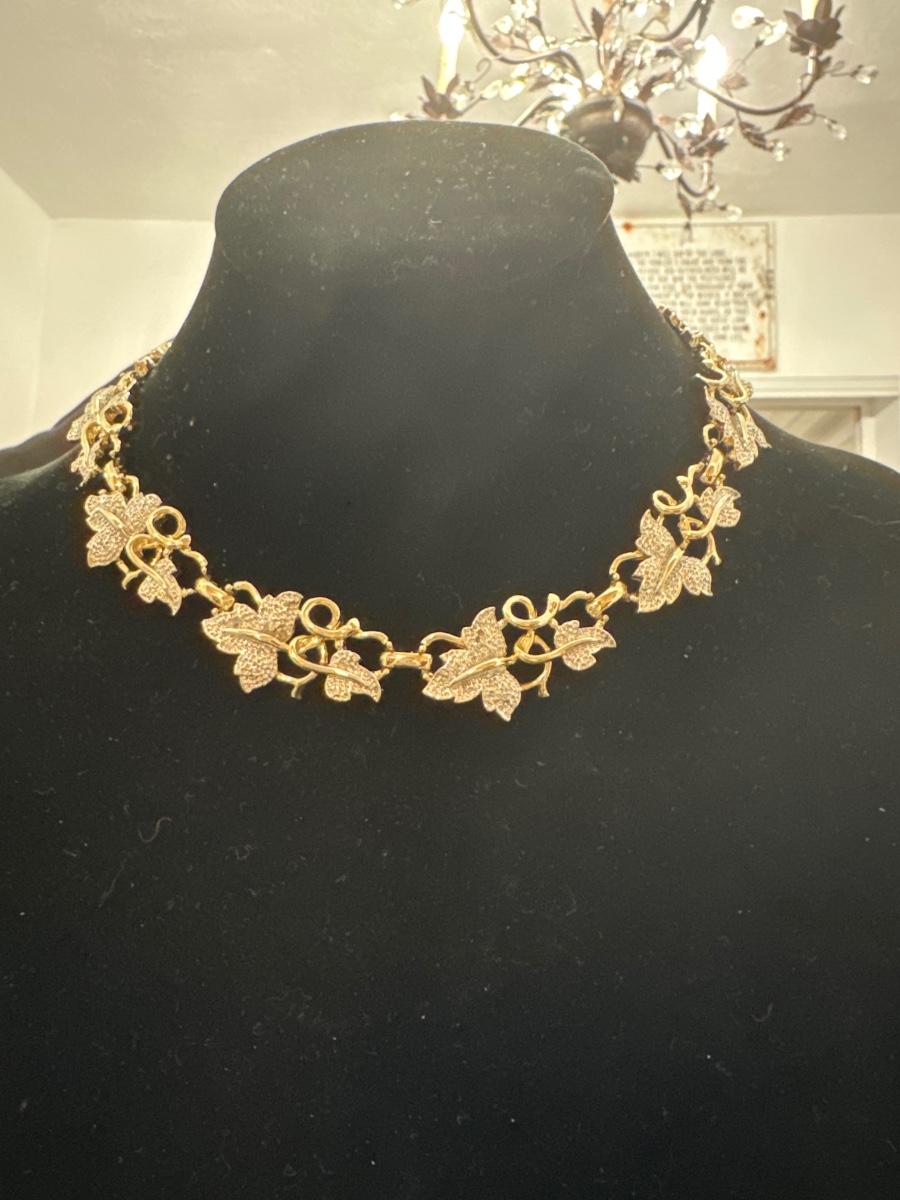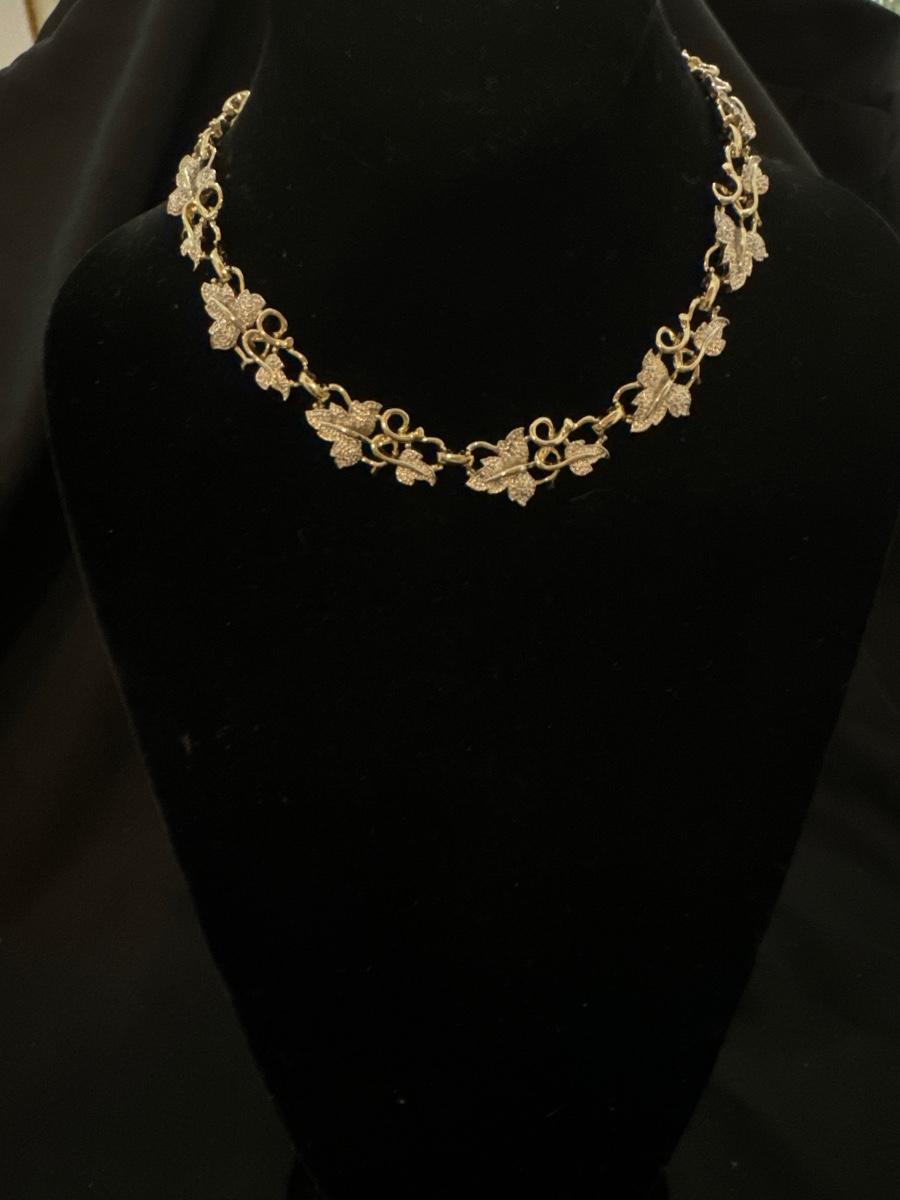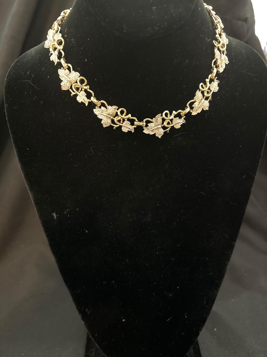 Vintage, unmarked, frosted leaf gold toned necklace