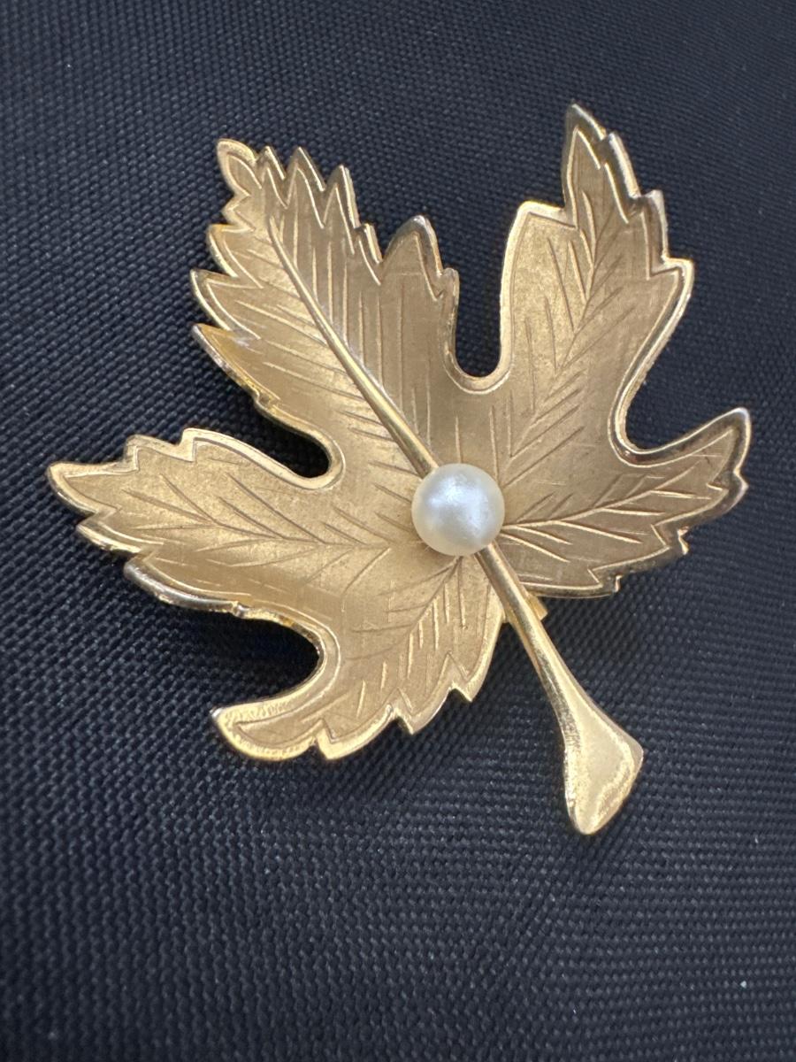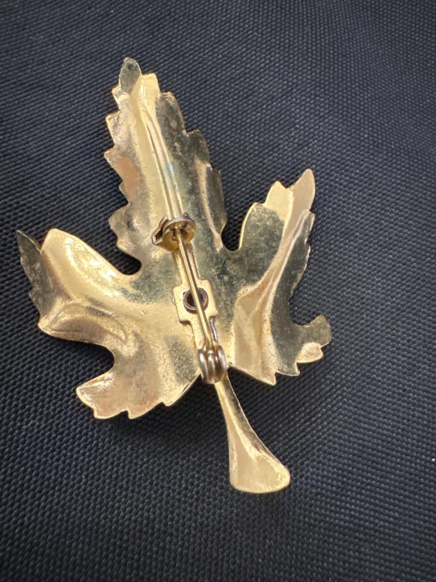 Vintage, unmarked, gold tone, metal Mapleleaf brooch
