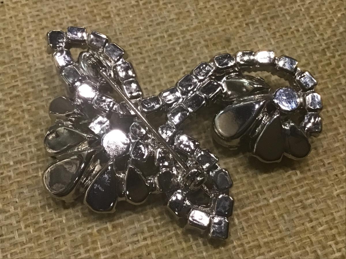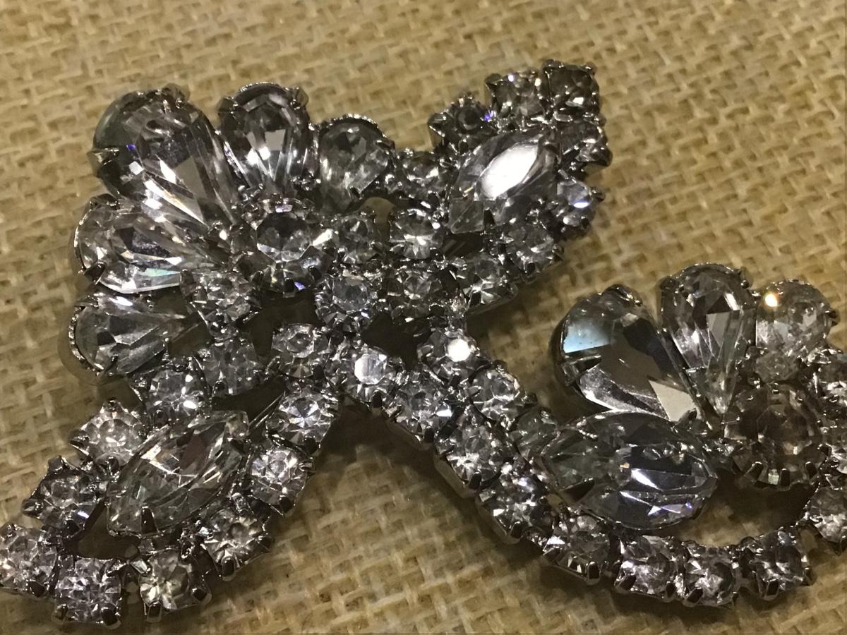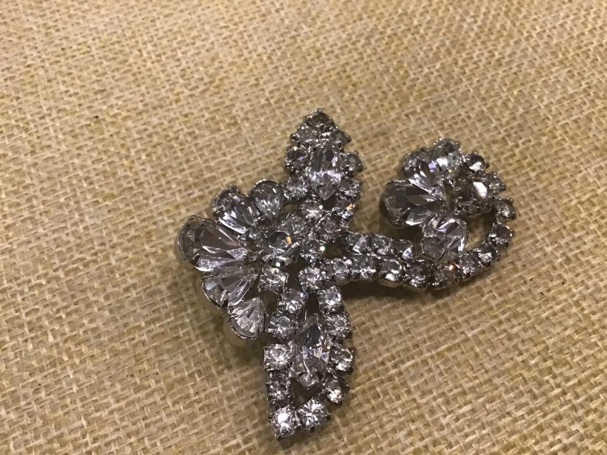 Vintage Unsigned Pin Brooch Clear Rhinestones