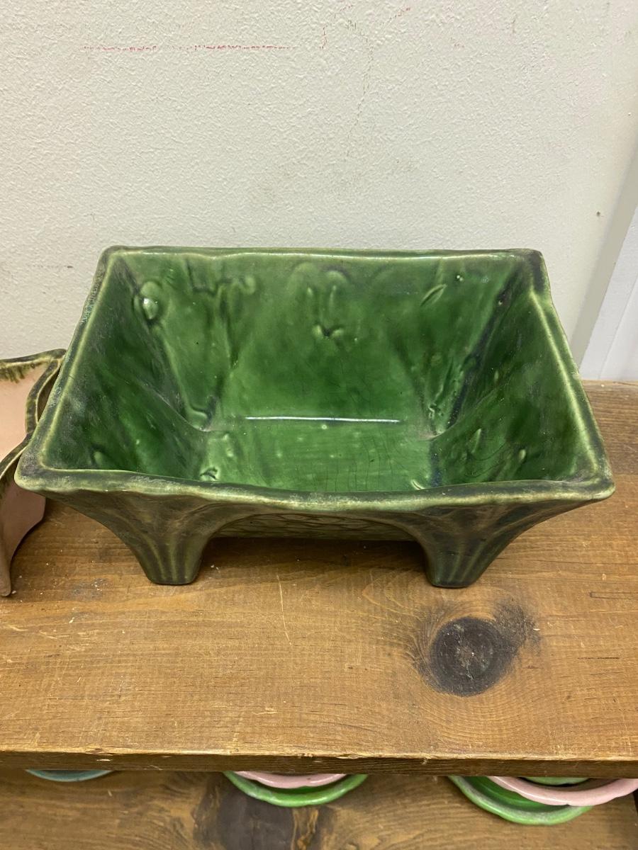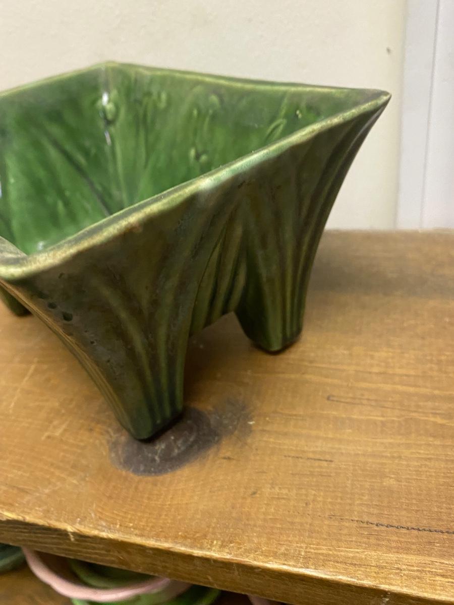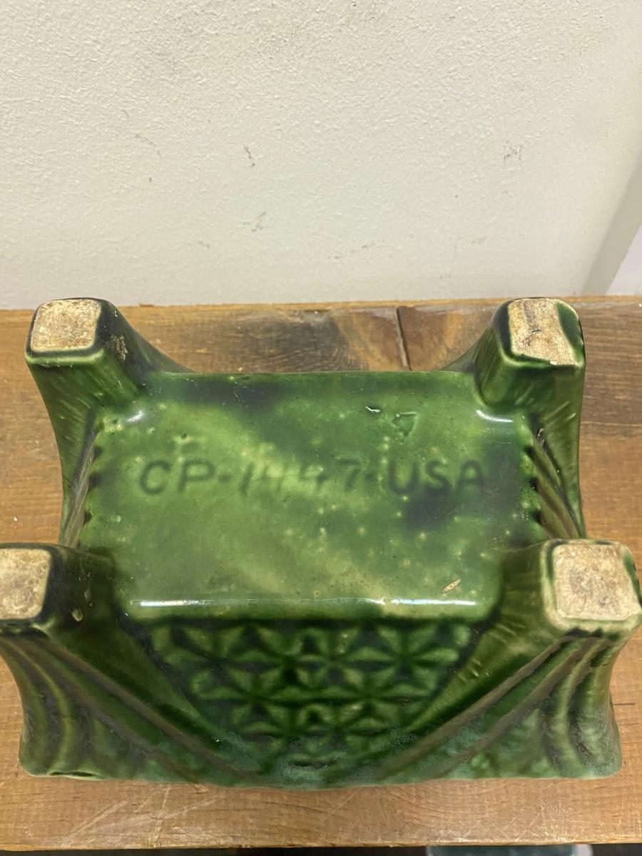 Vintage Upco Planter- Pink With Olive Green Drip Glaze and Art Deco Planter Vintage Cookson Pottery Ceramic 6.5” Footed Green Plant Pot CP 1447 USA MCM Arts and Crafts Style Midcentury