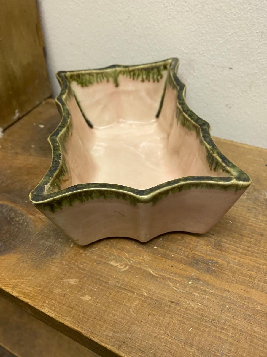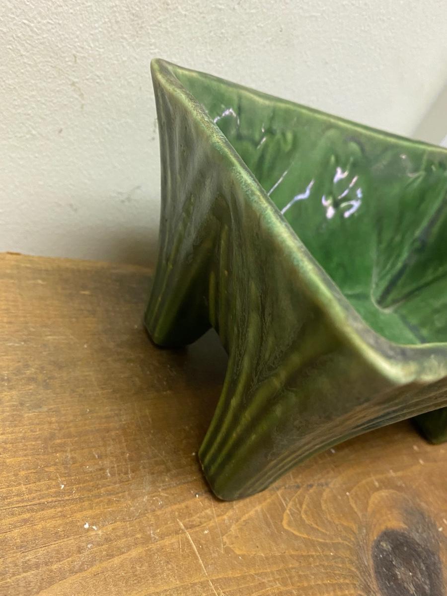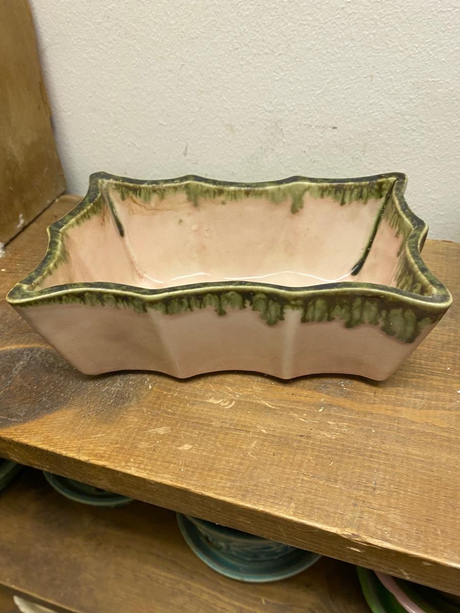 Vintage Upco Planter- Pink With Olive Green Drip Glaze and Art Deco Planter Vintage Cookson Pottery Ceramic 6.5” Footed Green Plant Pot CP 1447 USA MCM Arts and Crafts Style Midcentury