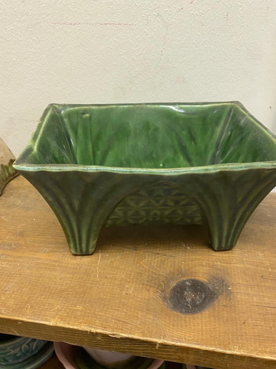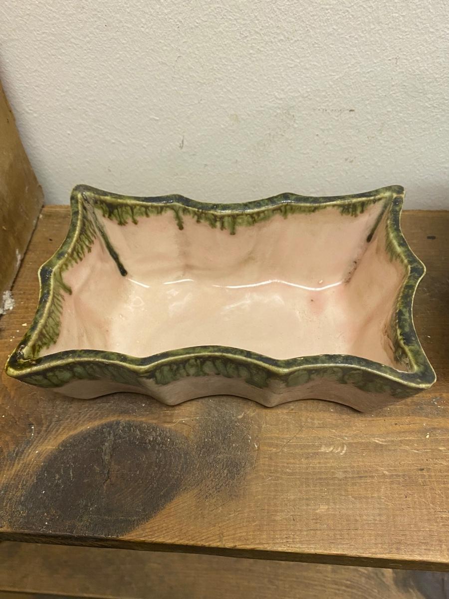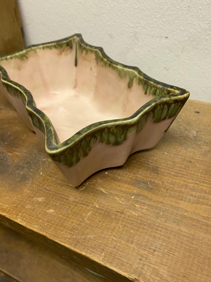 Vintage Upco Planter- Pink With Olive Green Drip Glaze and Art Deco Planter Vintage Cookson Pottery Ceramic 6.5” Footed Green Plant Pot CP 1447 USA MCM Arts and Crafts Style Midcentury