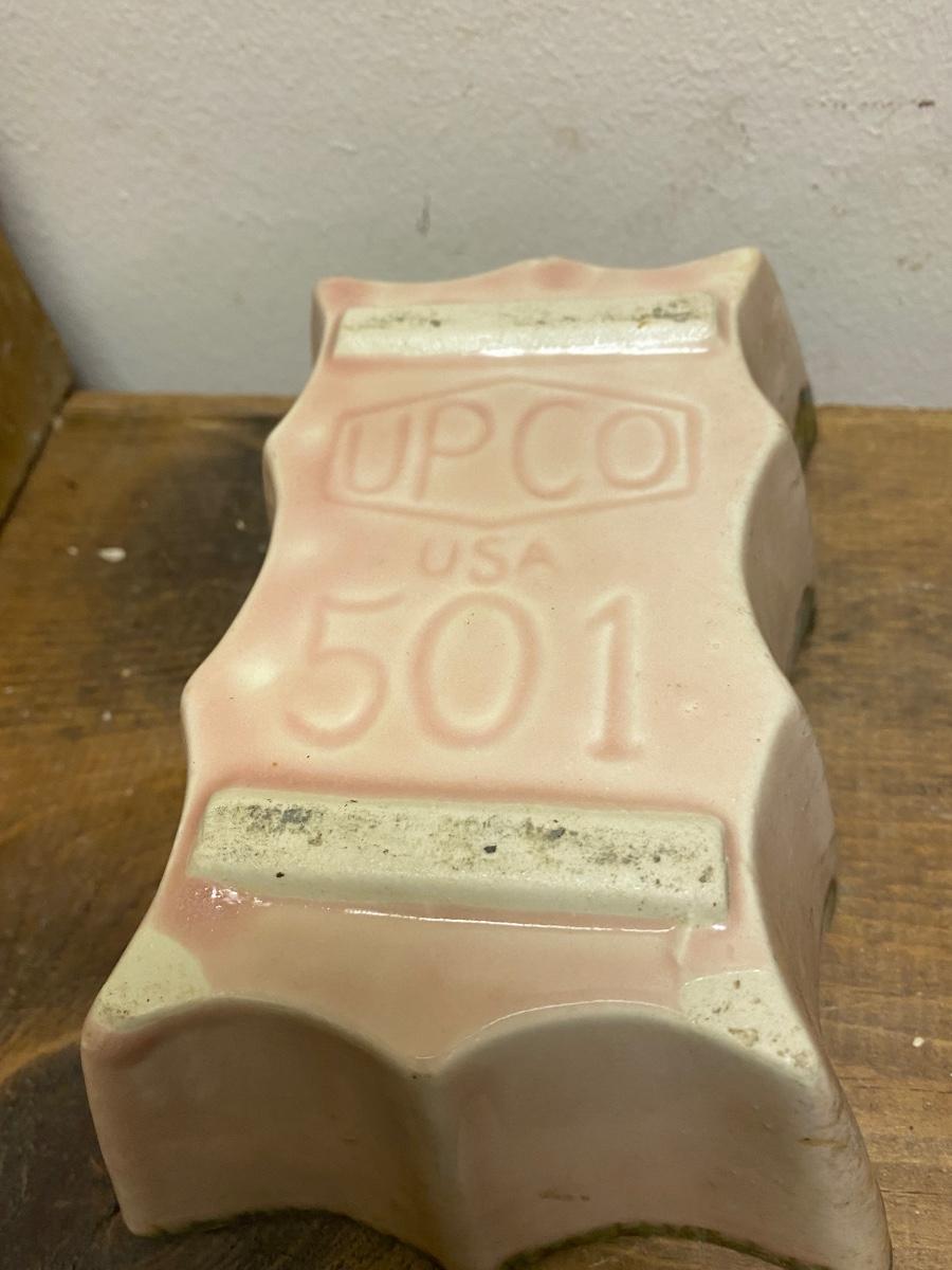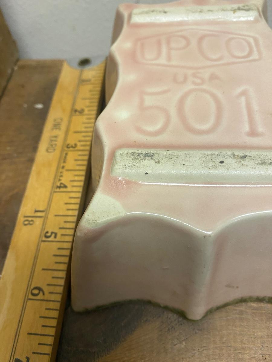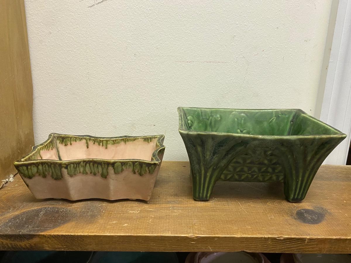 Vintage Upco Planter- Pink With Olive Green Drip Glaze and Art Deco Planter Vintage Cookson Pottery Ceramic 6.5” Footed Green Plant Pot CP 1447 USA MCM Arts and Crafts Style Midcentury