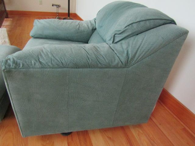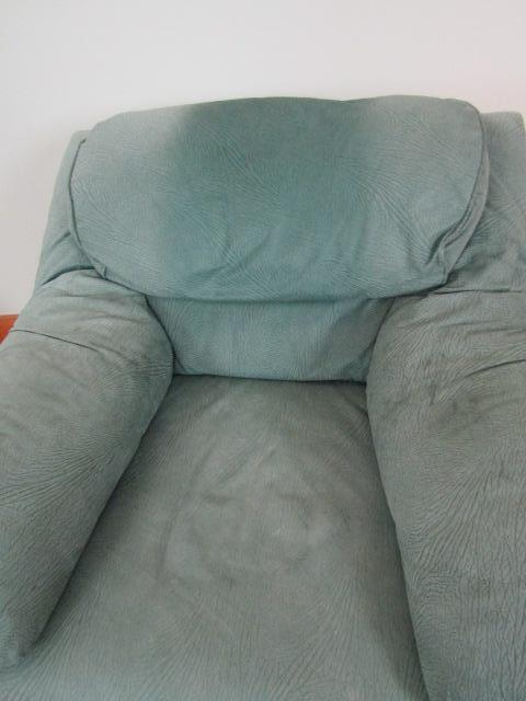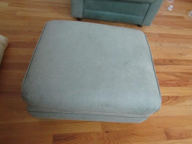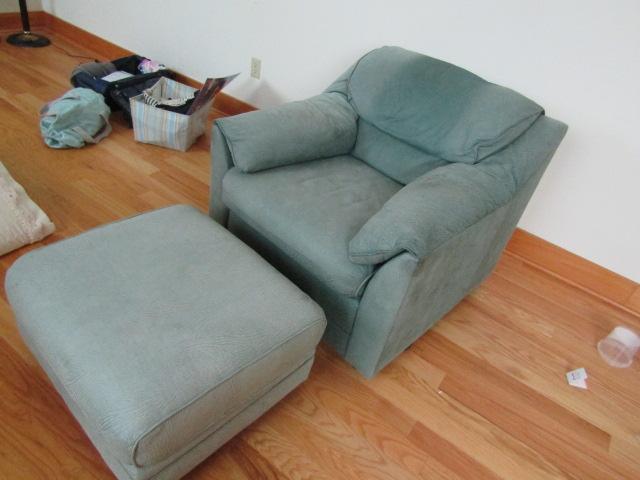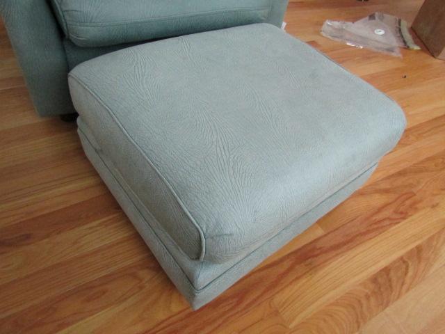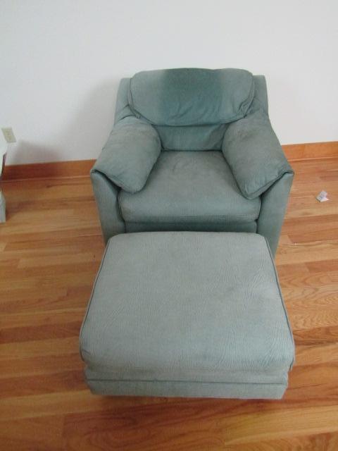 Vintage Upholstered Chair and Ottoman by Ethan Allen. Chair has some fading and staining.
