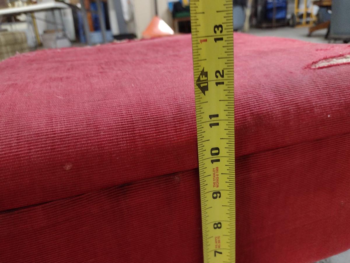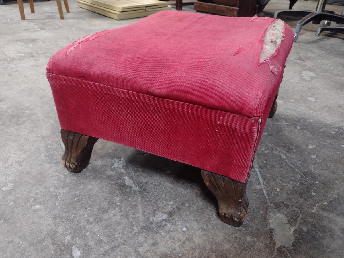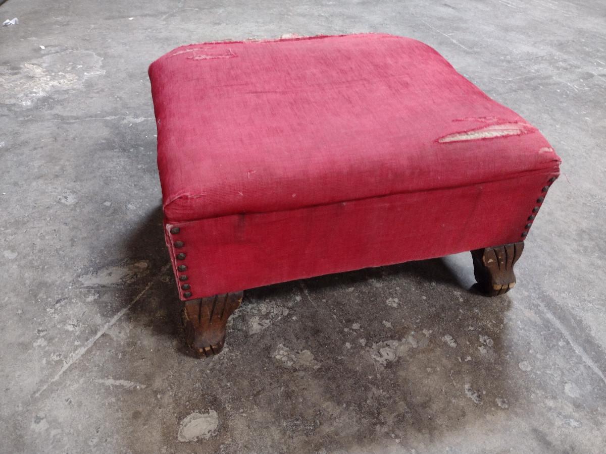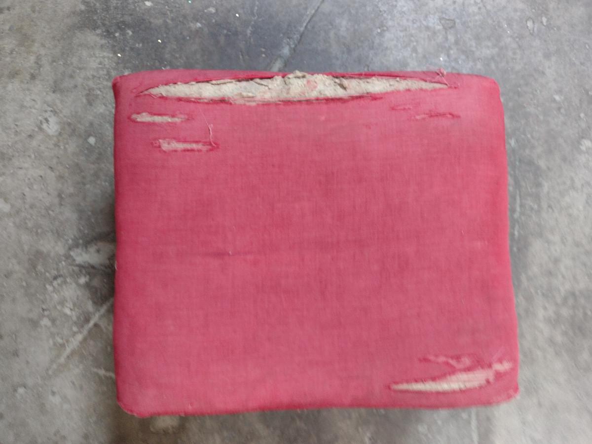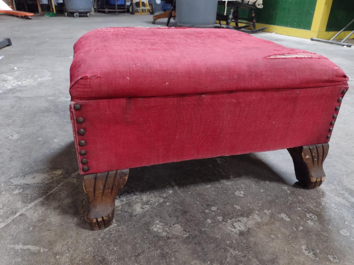 Vintage Upholstered Hassock- Wooden Feet and Tack Accents. Please see all pictures- upholstery is damaged.