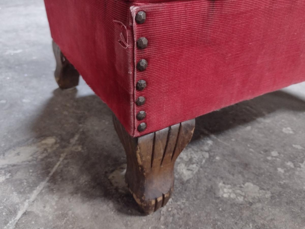 Vintage Upholstered Hassock- Wooden Feet and Tack Accents