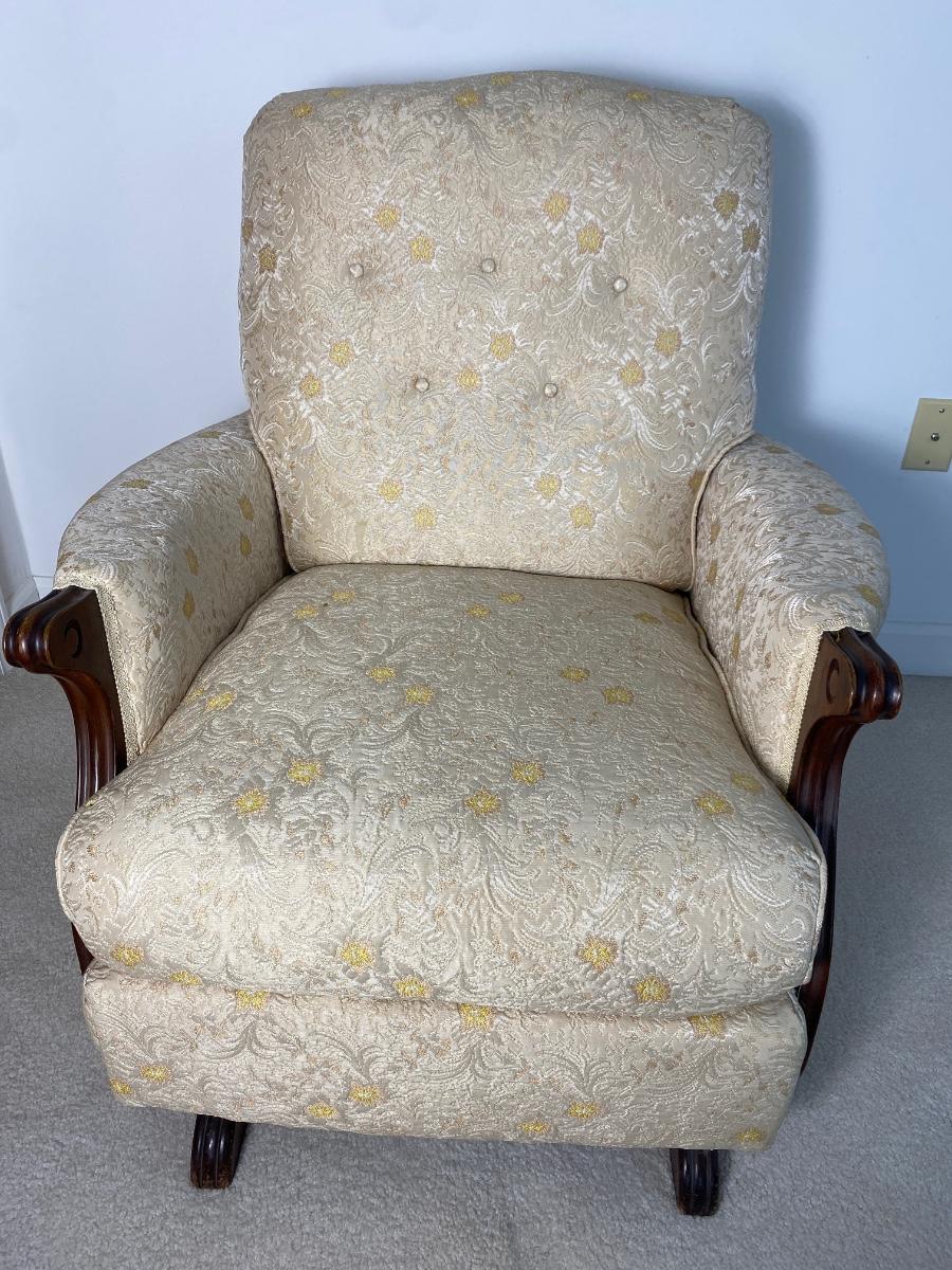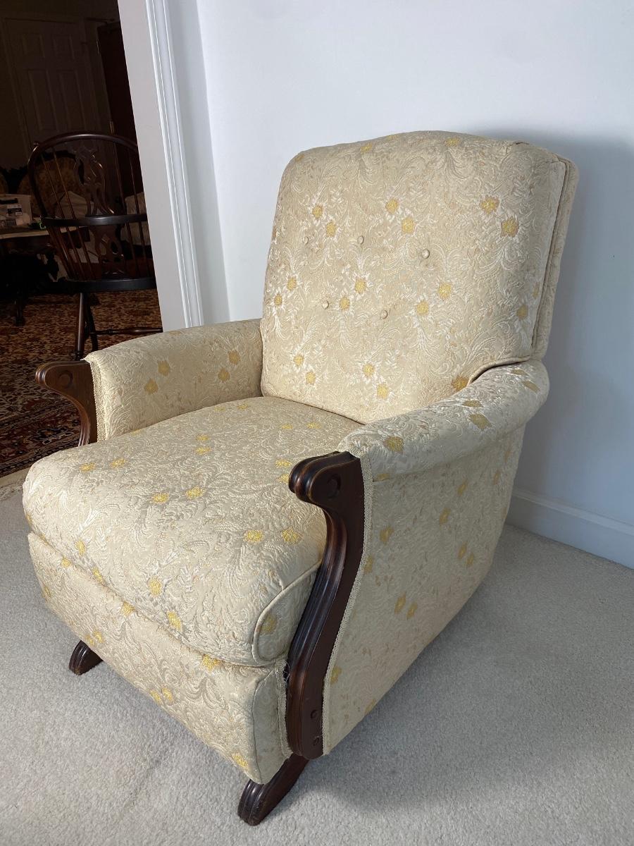 Clean, solid and comfortable. Nice neutral upholstery in beige and yellow. Smoke free pet free home.
