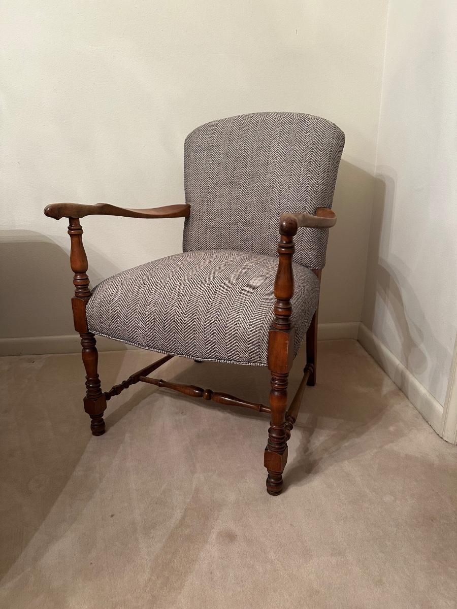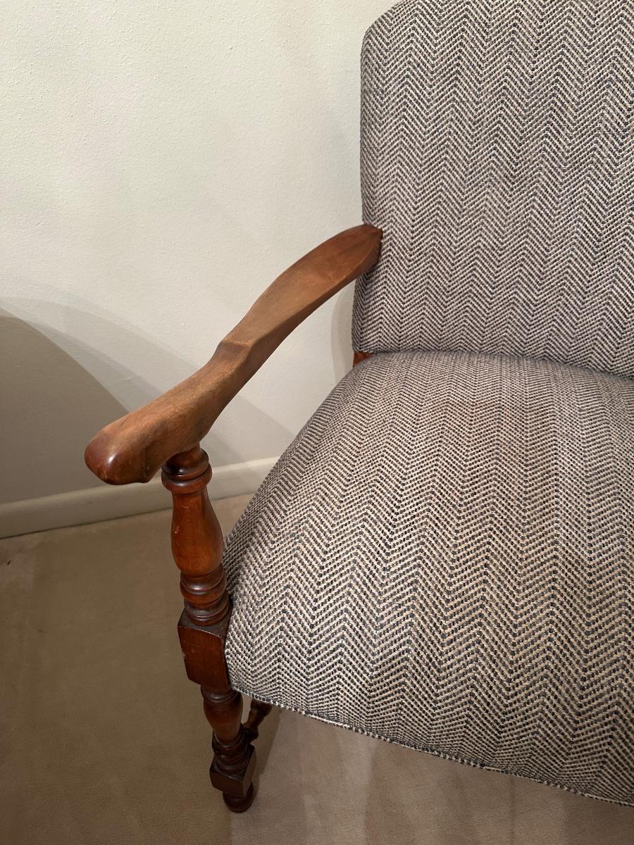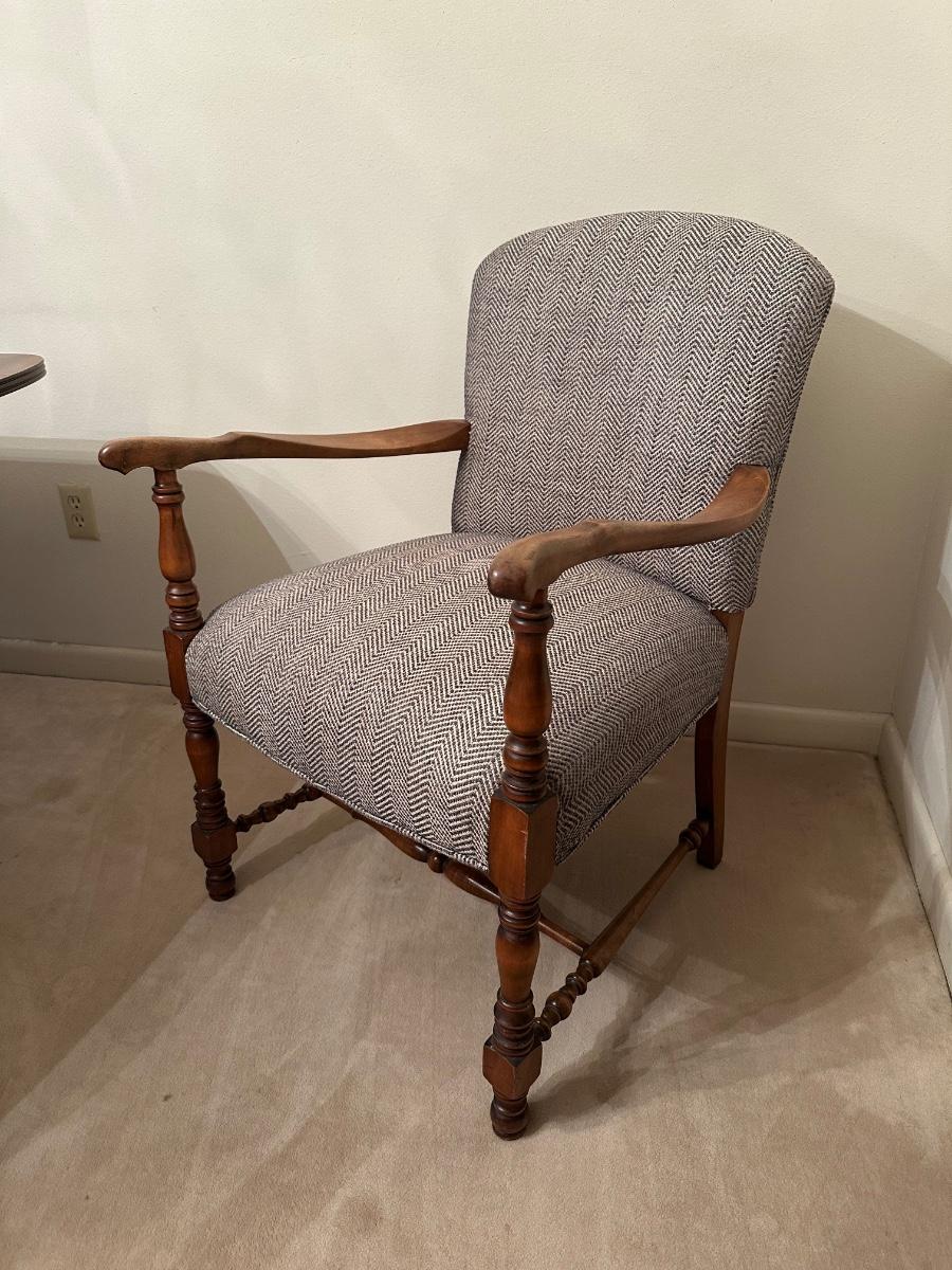 Vintage Upholstered Wood-Frame Armchair