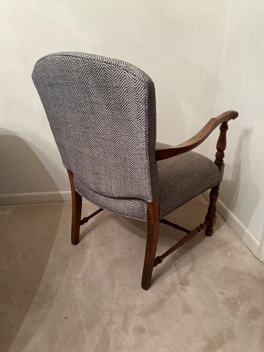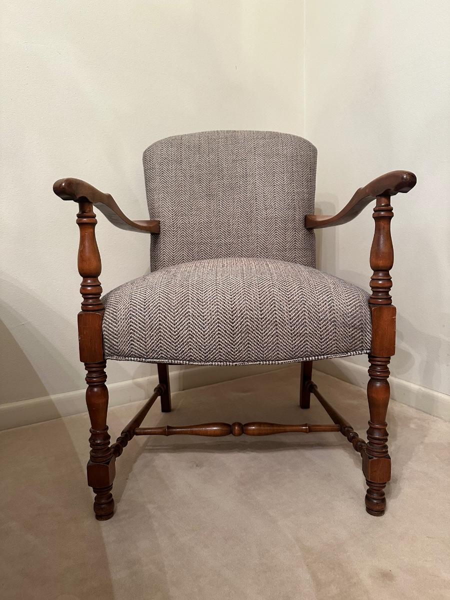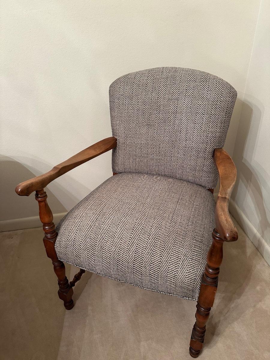 Vintage Upholstered Wood-Frame Armchair
