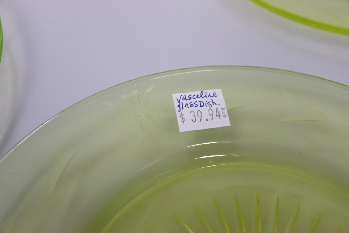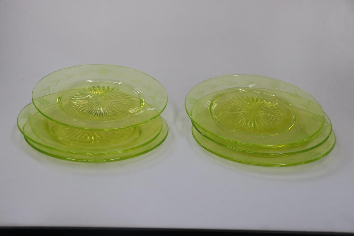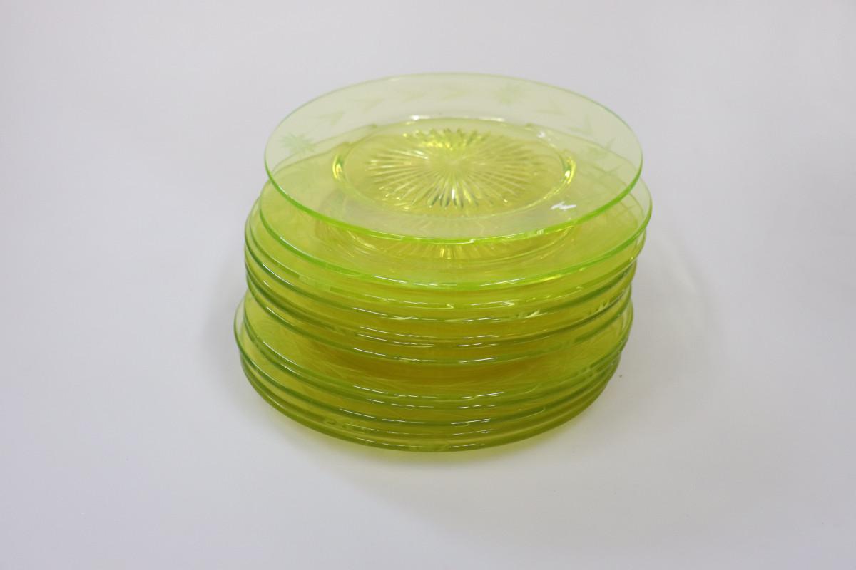 Vintage Uranium Depression Glass Etched Dessert Plate (LOT OF 12)