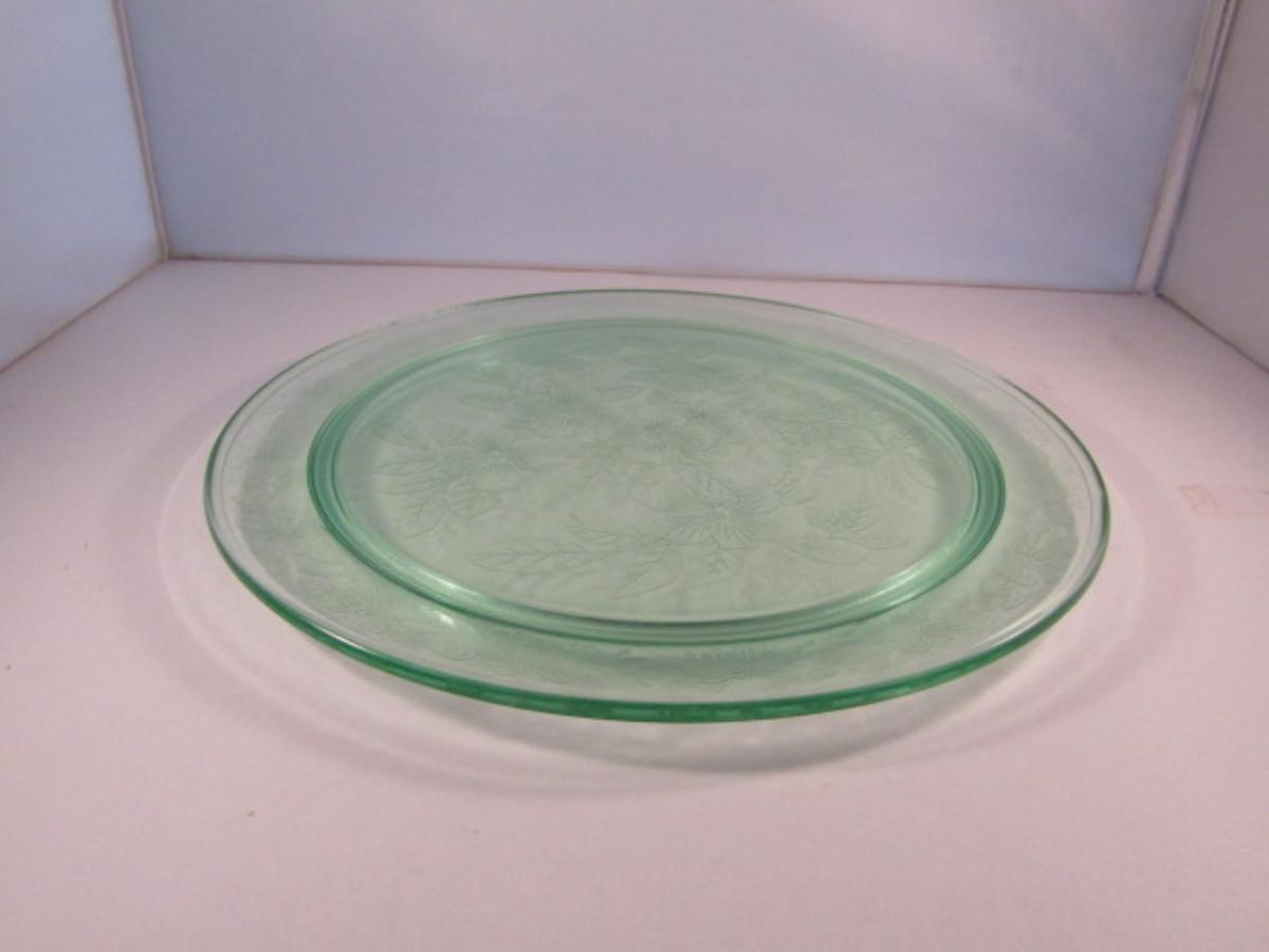 Vintage Uranium Glass Cake Plate- Approx 13" in Diameter