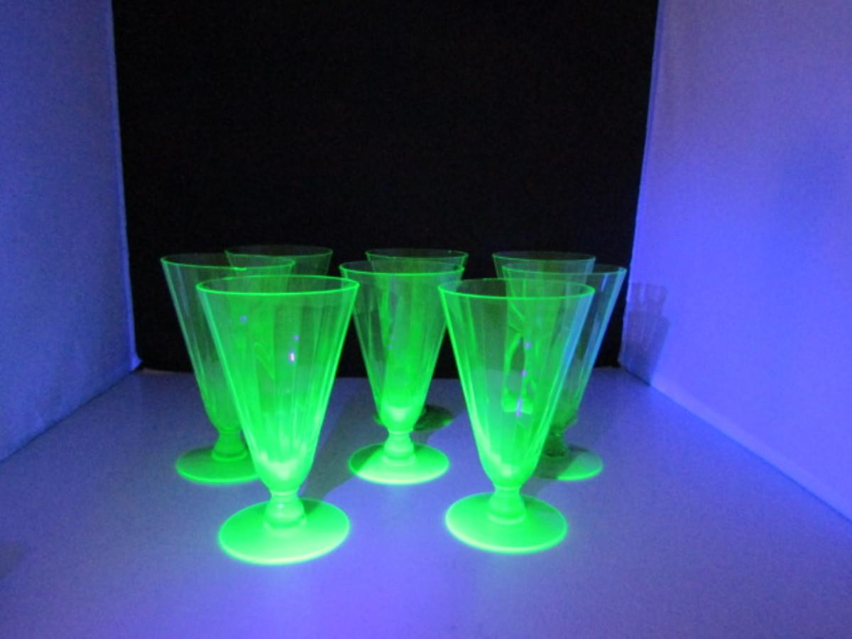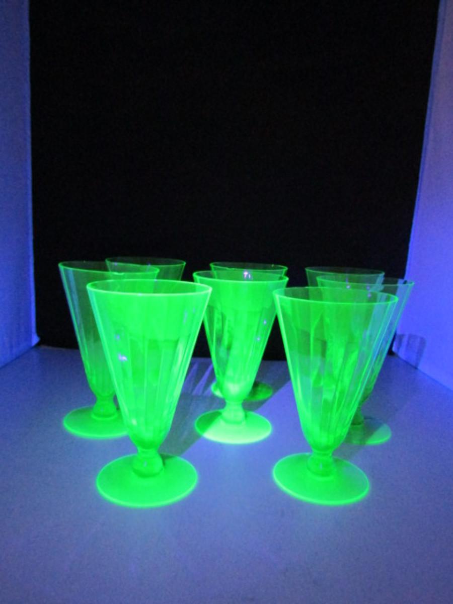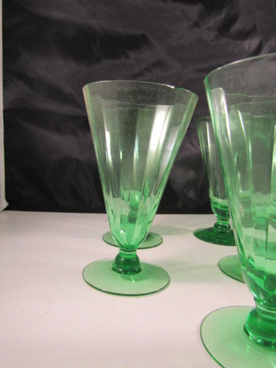 Vintage Uranium Glass Iced Tea Glasses- Possibly Tiffen Franciscan- 8 Pieces