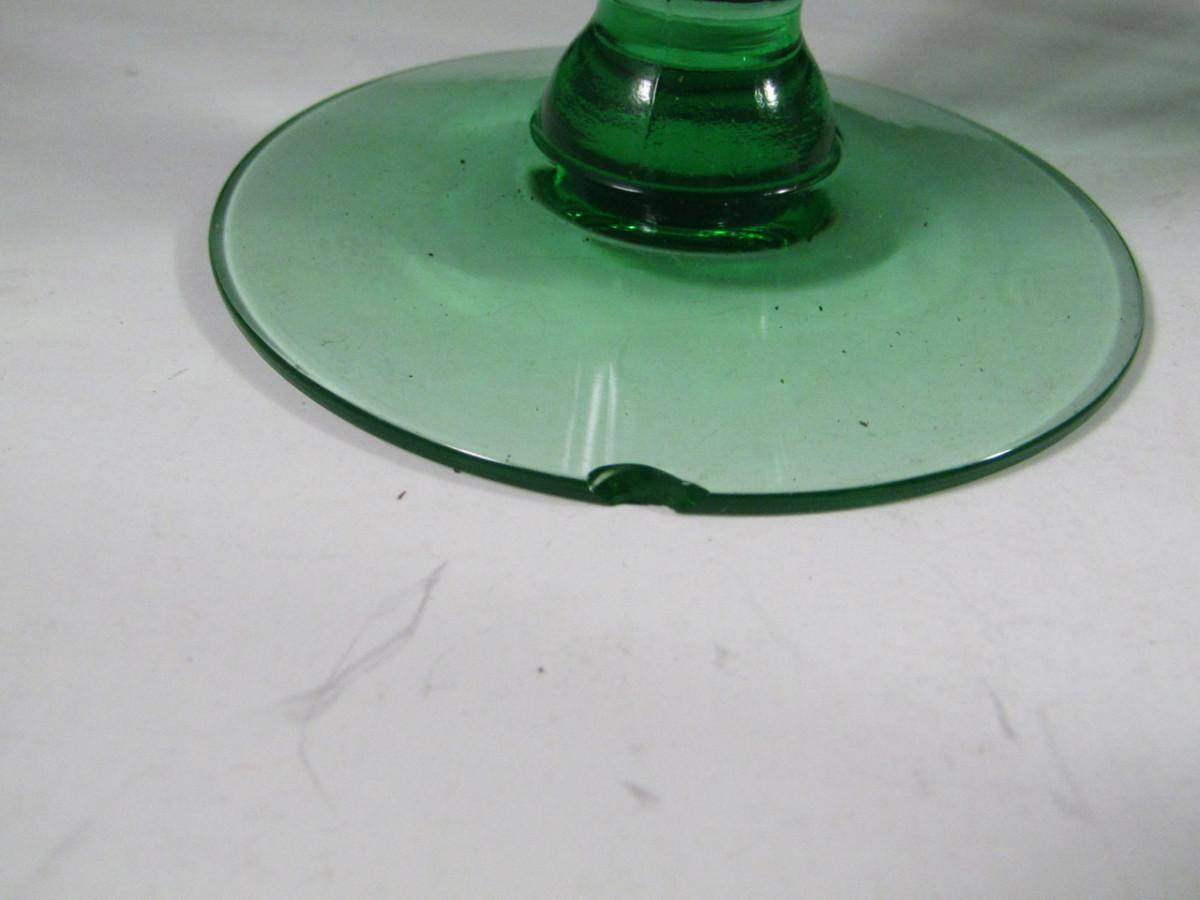 Vintage Uranium Glass Iced Tea Glasses- Possibly Tiffen Franciscan- 8 Pieces. Items are in used condition. At least two pieces have small chips.