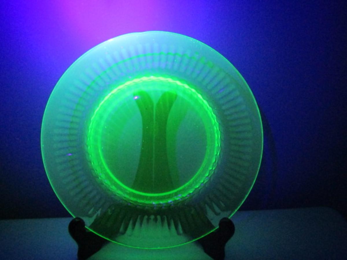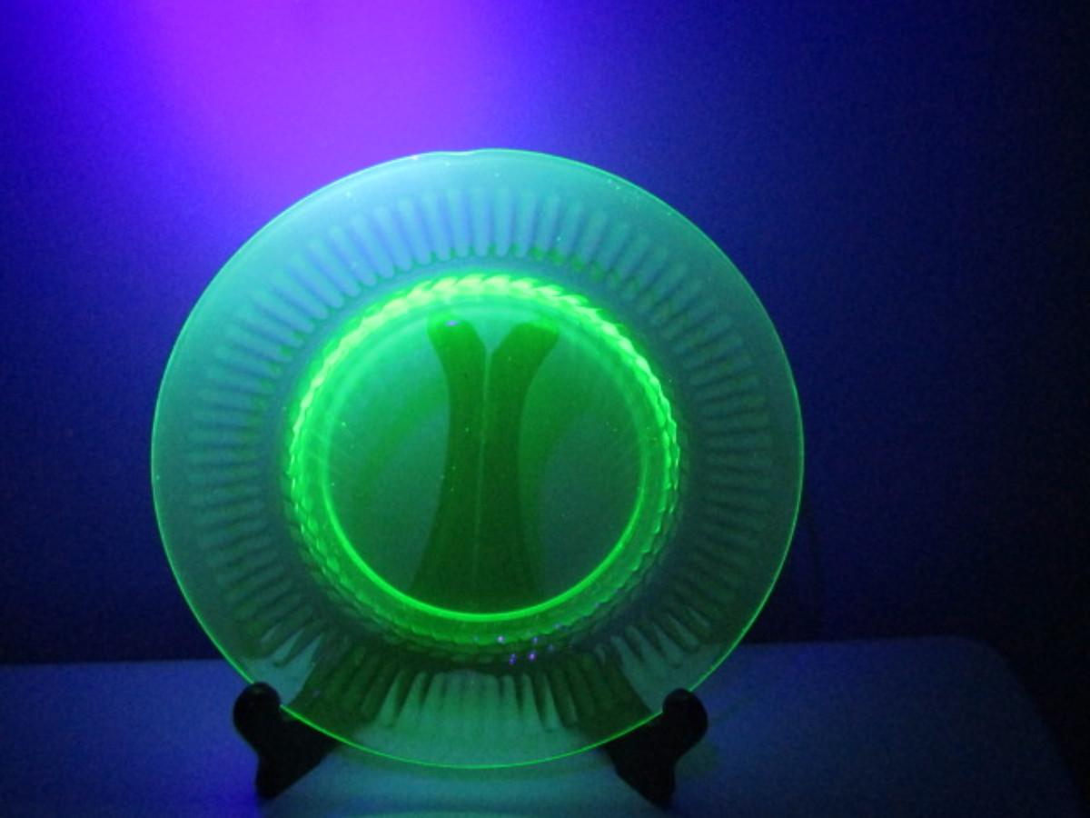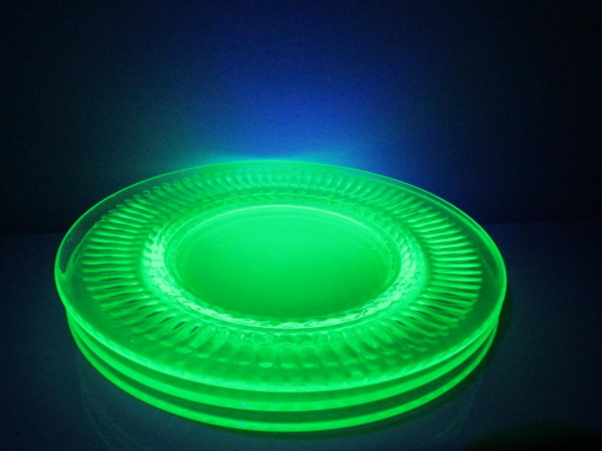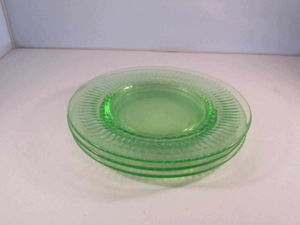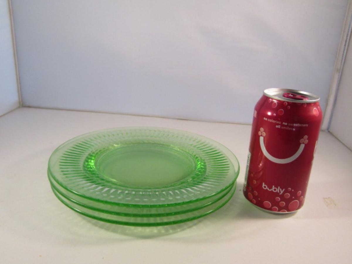 Vintage Uranium Glass Plate- 3 Pieces- Approx 8 1/4" in Diameter
