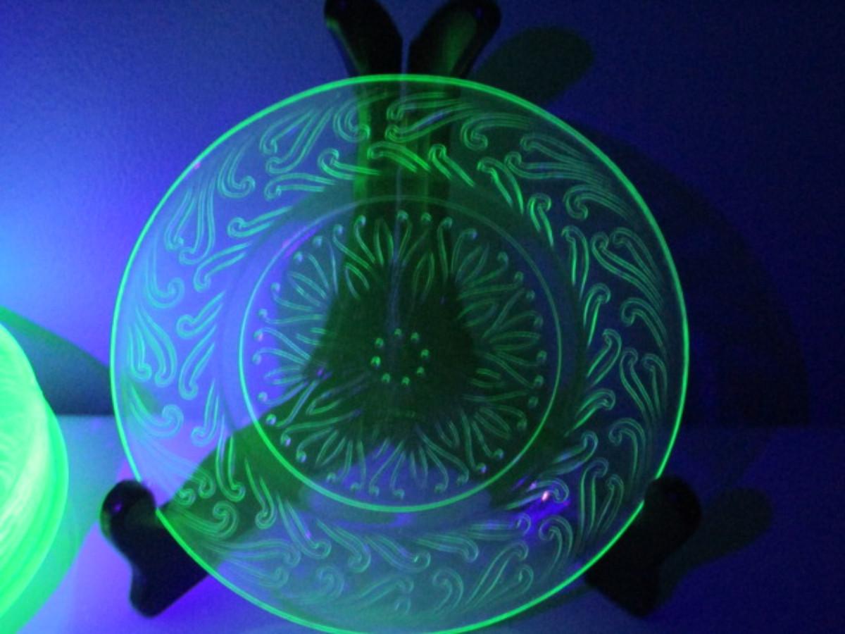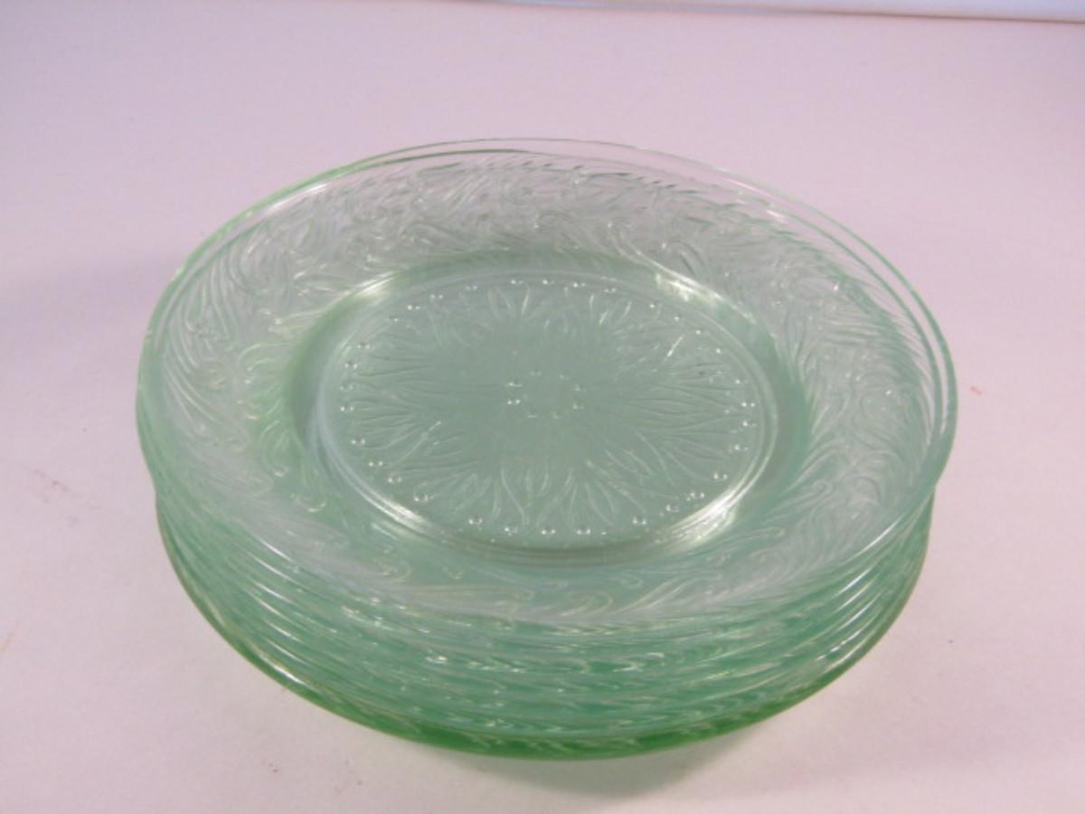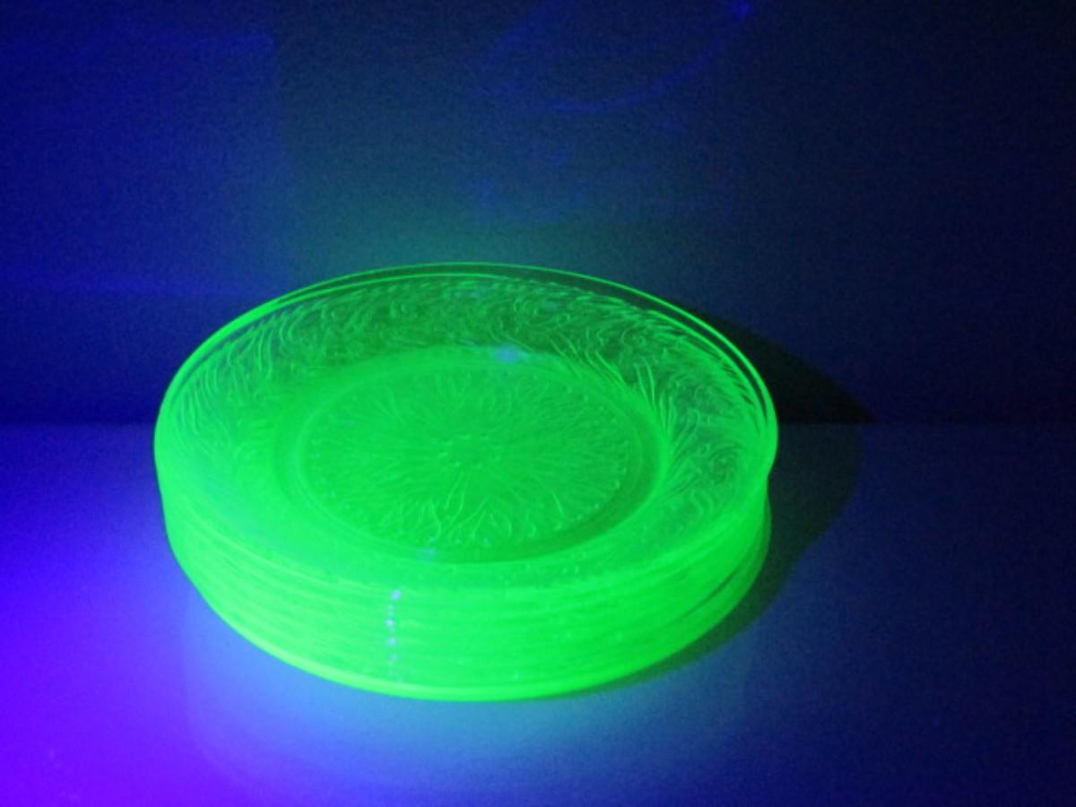 Vintage Uranium Glass Plates- 7 Pieces- Approx 6" in Diameter
