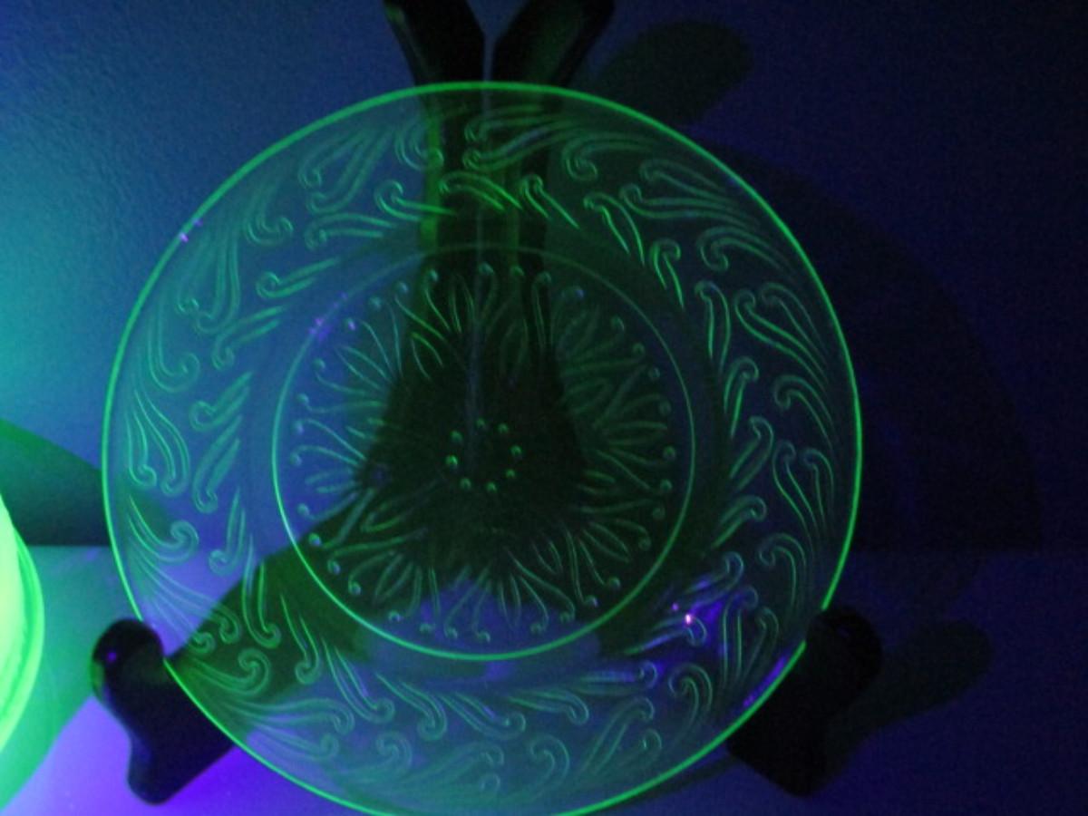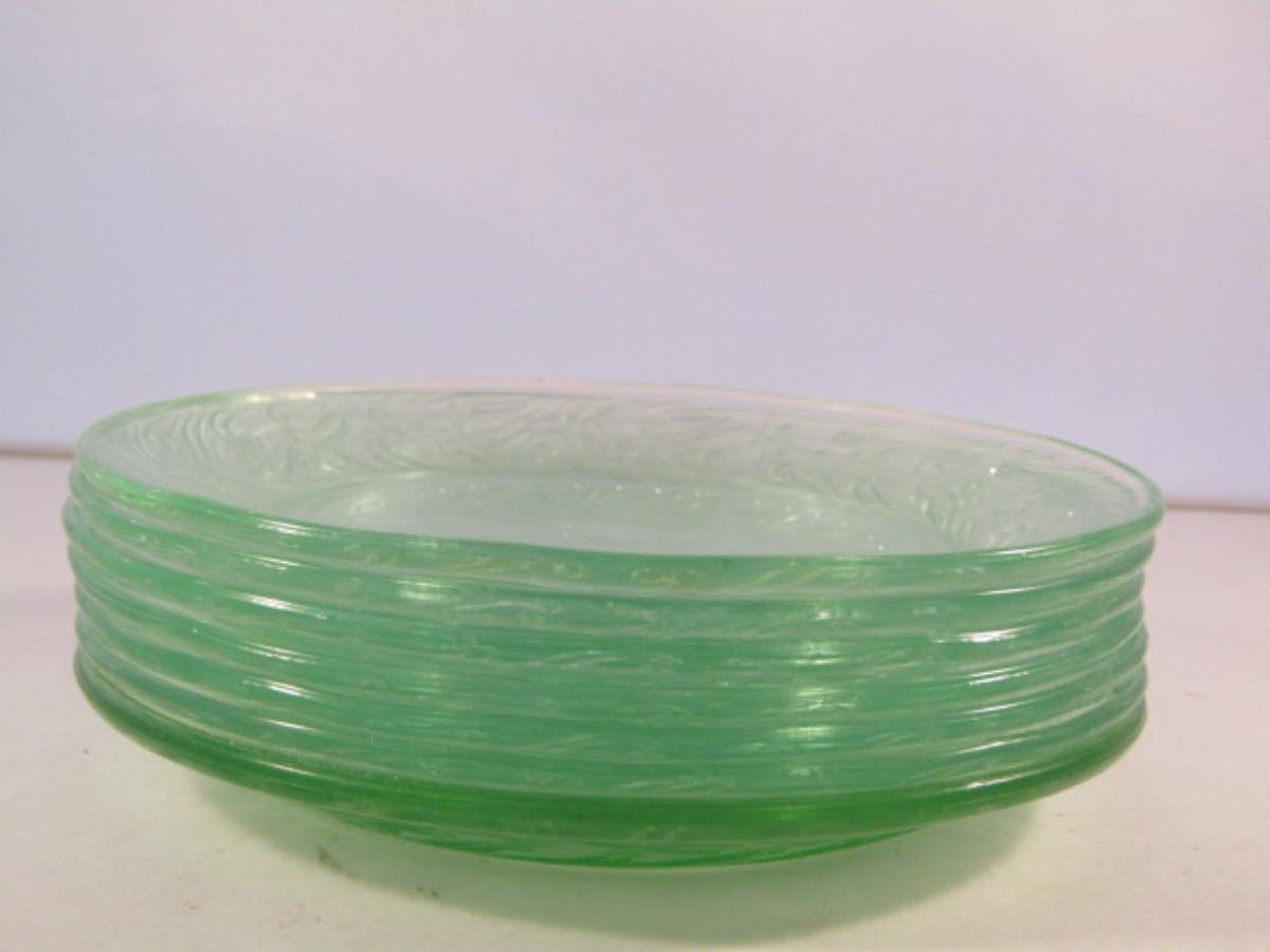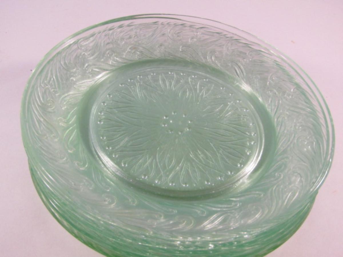 Vintage Uranium Glass Plates- 7 Pieces- Approx 6" in Diameter