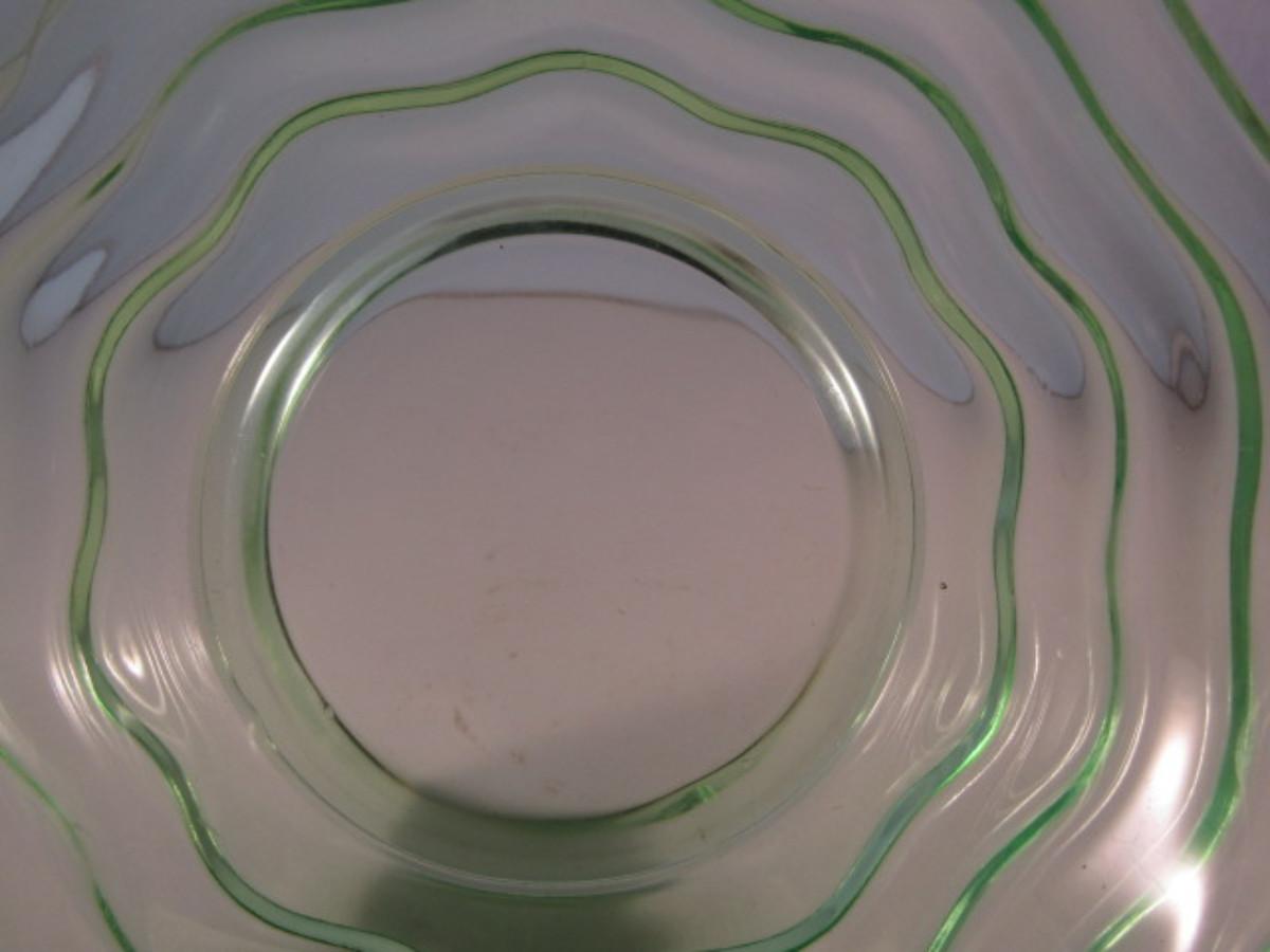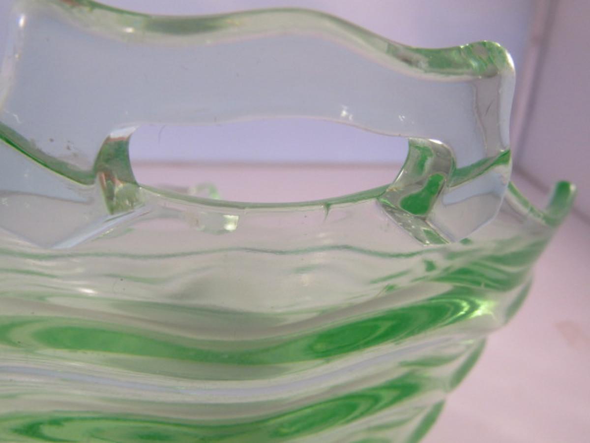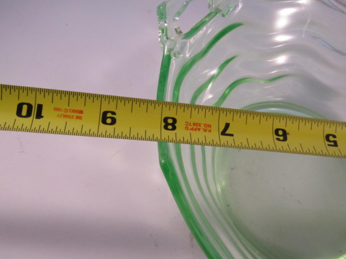 Vintage Uranium Glass Rippled Bowl with Handles- Approx 3 1/4" Tall, 8" in Diameter. Please see all pictures- small chip on rim.