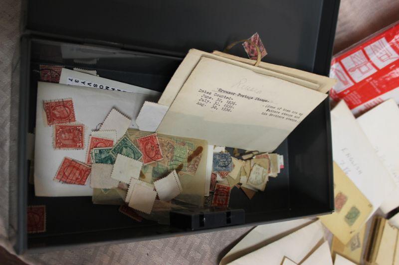 Large collection of US and Foreign Postage Stamps. Everything in the picture included. Most seem to be separated by country. They look like they have been used/ removed from letters. Good Condition.