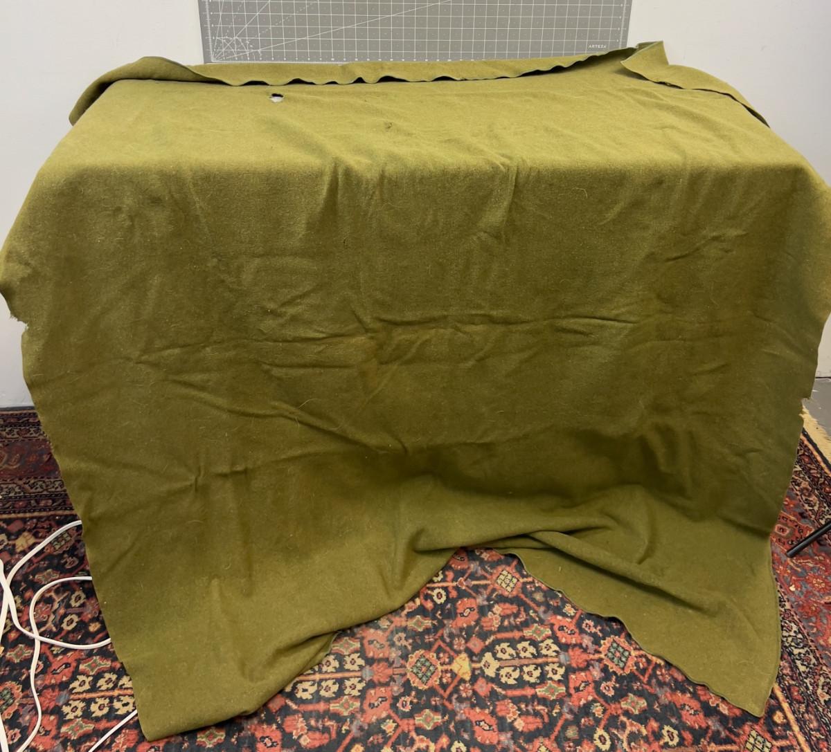Has a couple of holes. Authentic Wool, Army Green. 66 X 84" Used.