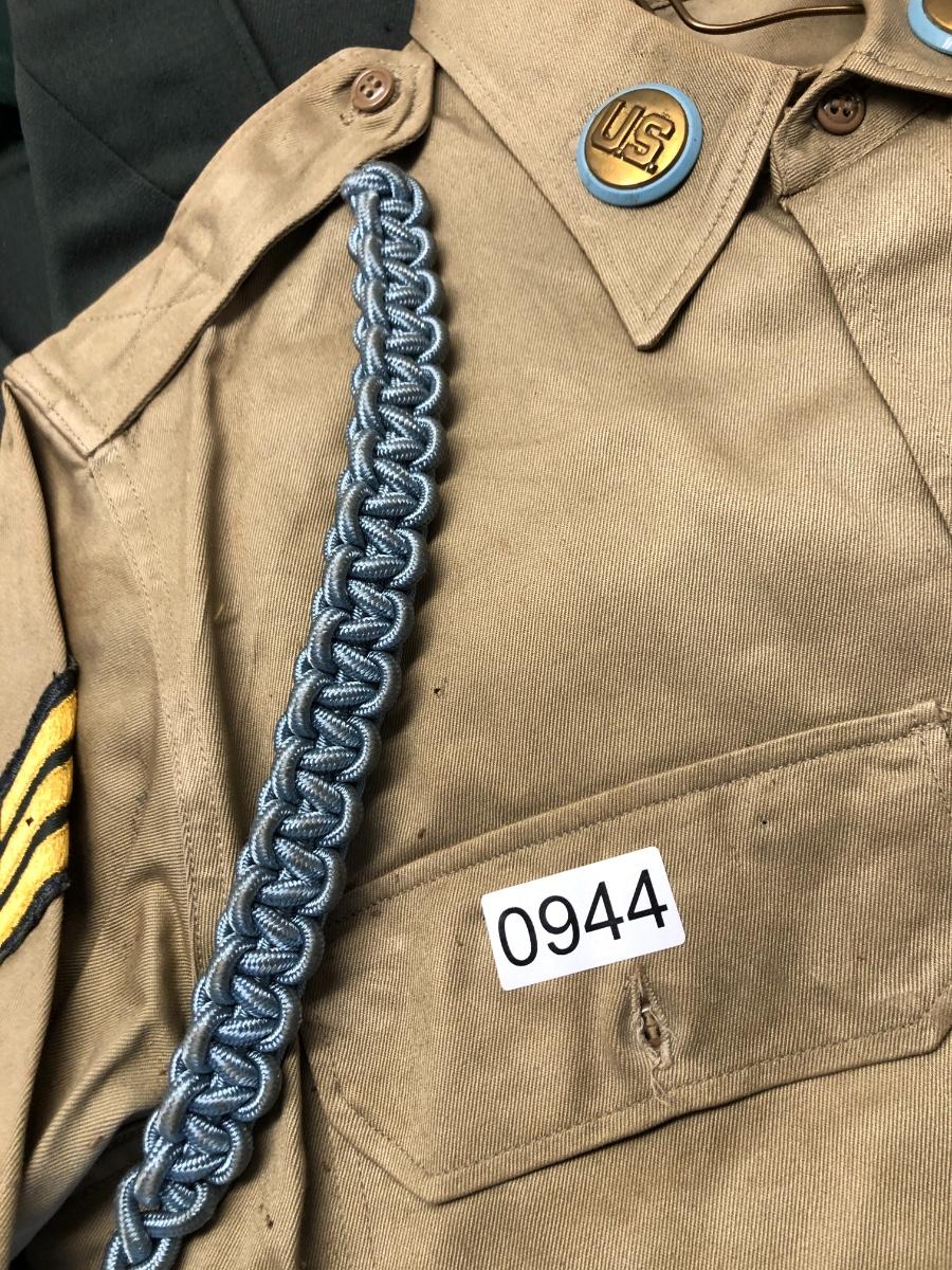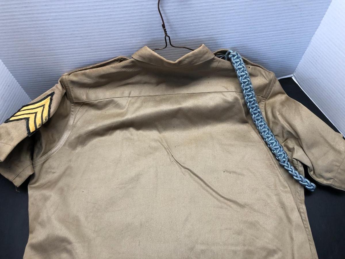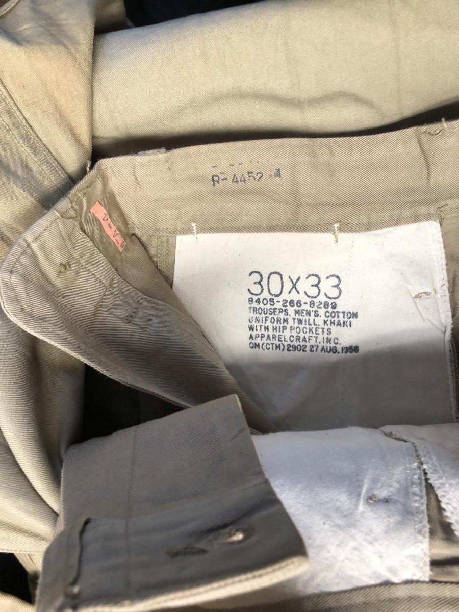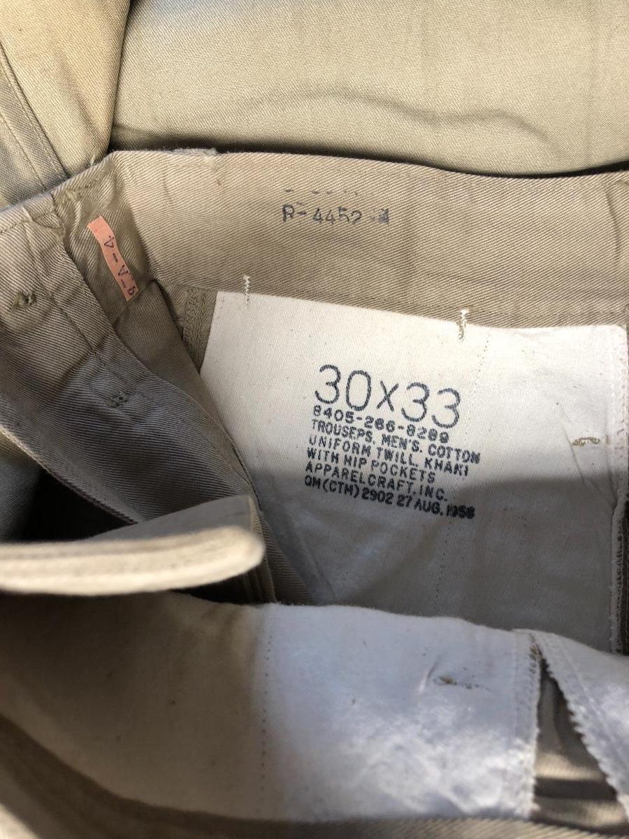 All items are sold as is, as found in the estate. Please see all photos for content, measurements and condition. This clothing has holes, is soiled from storage over the years and does shows wear. It also includes a pair of tan pants.