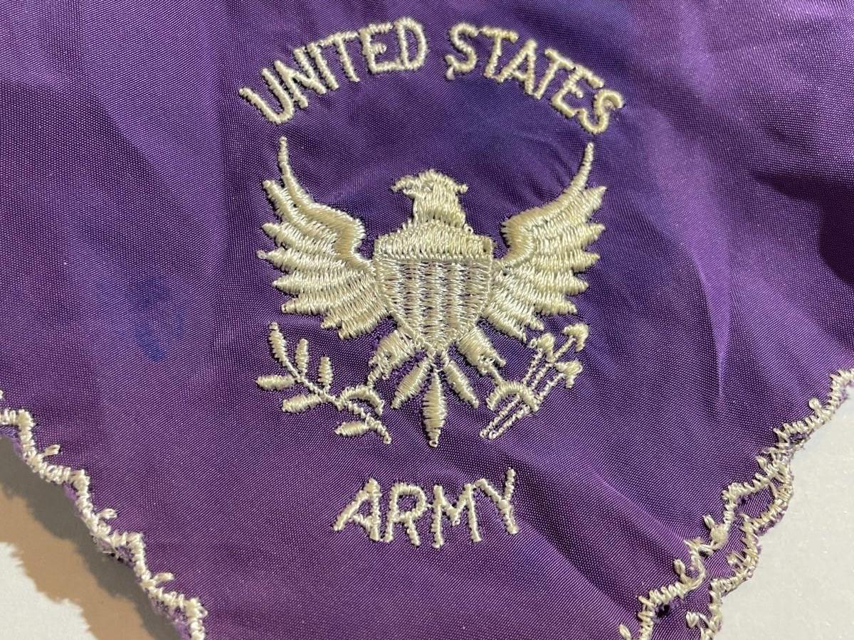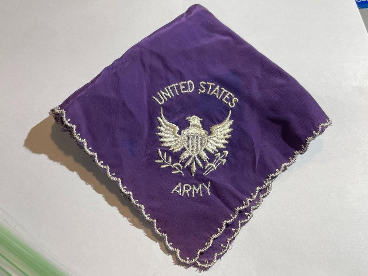 Vintage US Army World War II Era Silk Embroidered Handkerchief in Good Preowned Condition. $5 Domestic Shipping.