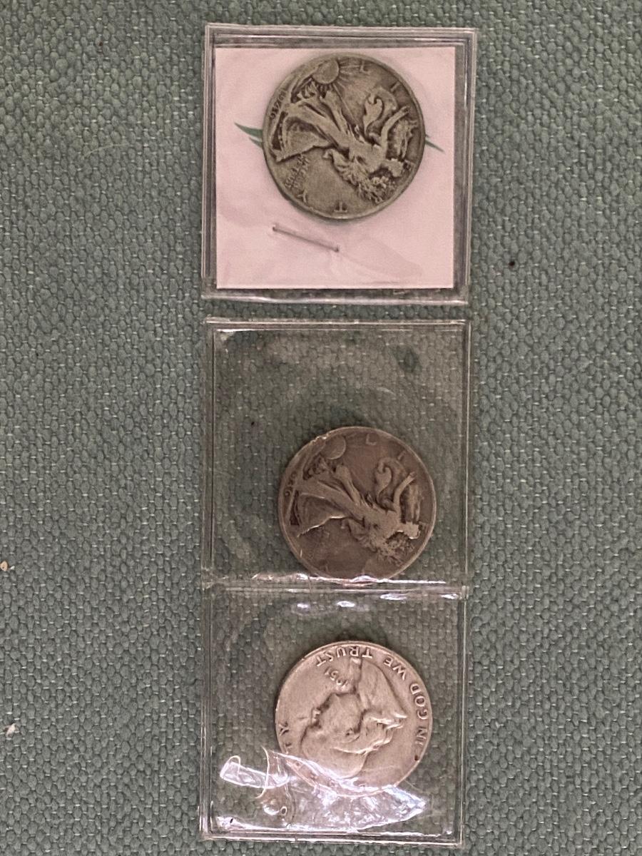 Vintage US Collectable silver Coin Lot, 2 Qty Walking Liberty, 1 1951 Franklin Liberty Bell Half Dollar Coin