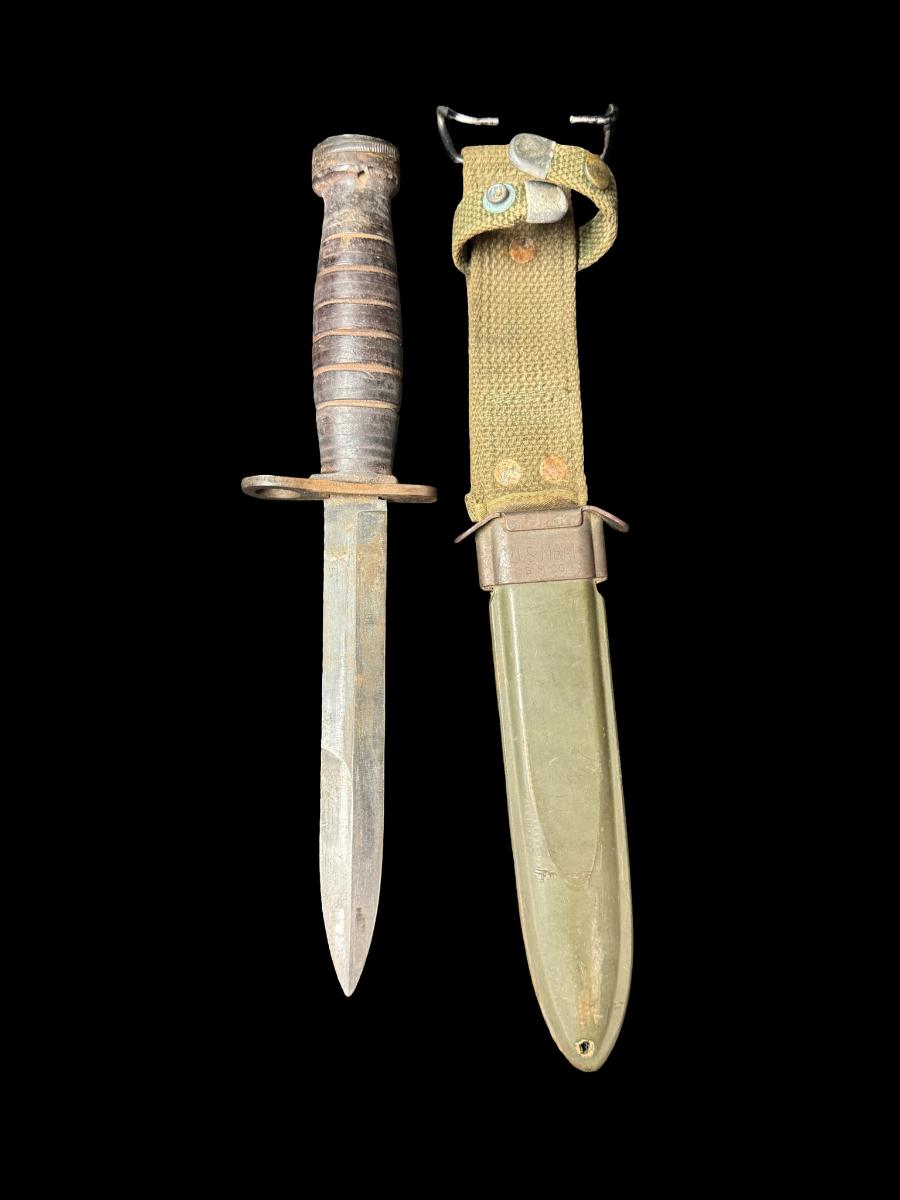 Developed for the M1 carbine. Stacked leather pommel. Possibly produced for WW2 or shortly thereafter. Age related wear. Measurement: 12.5”L. [JR]