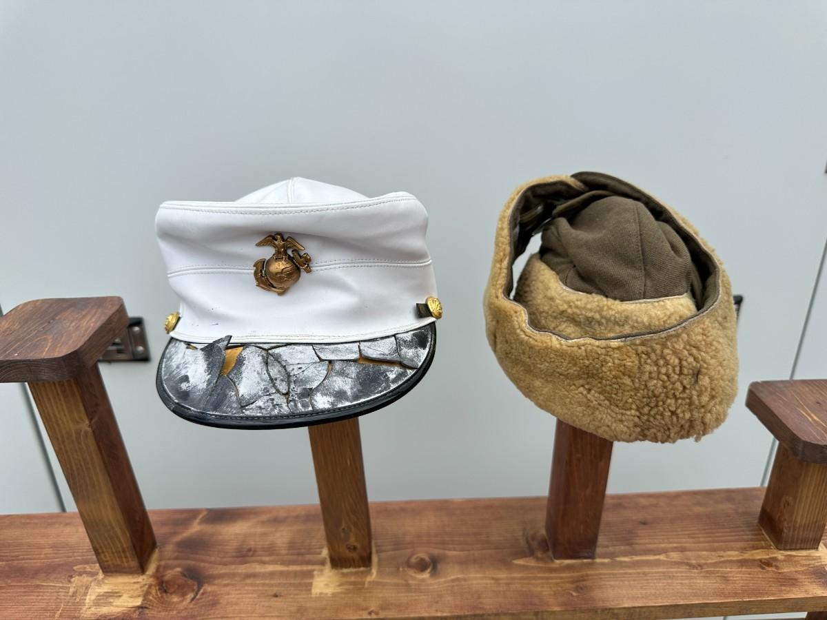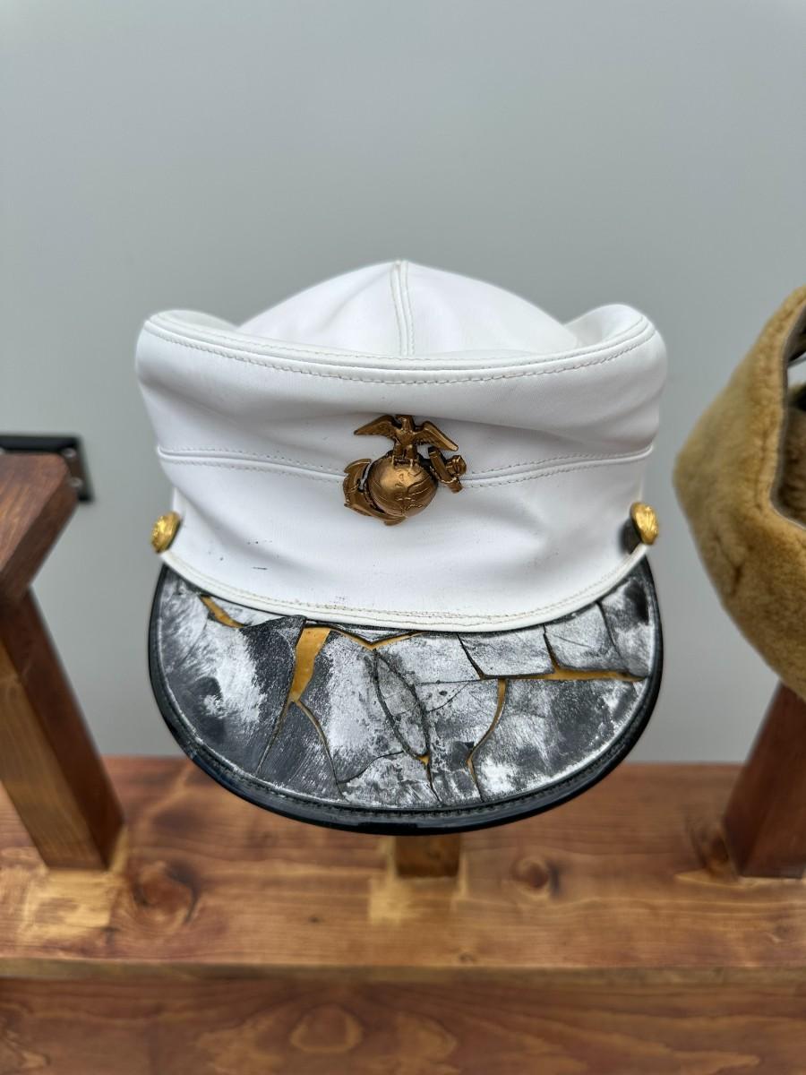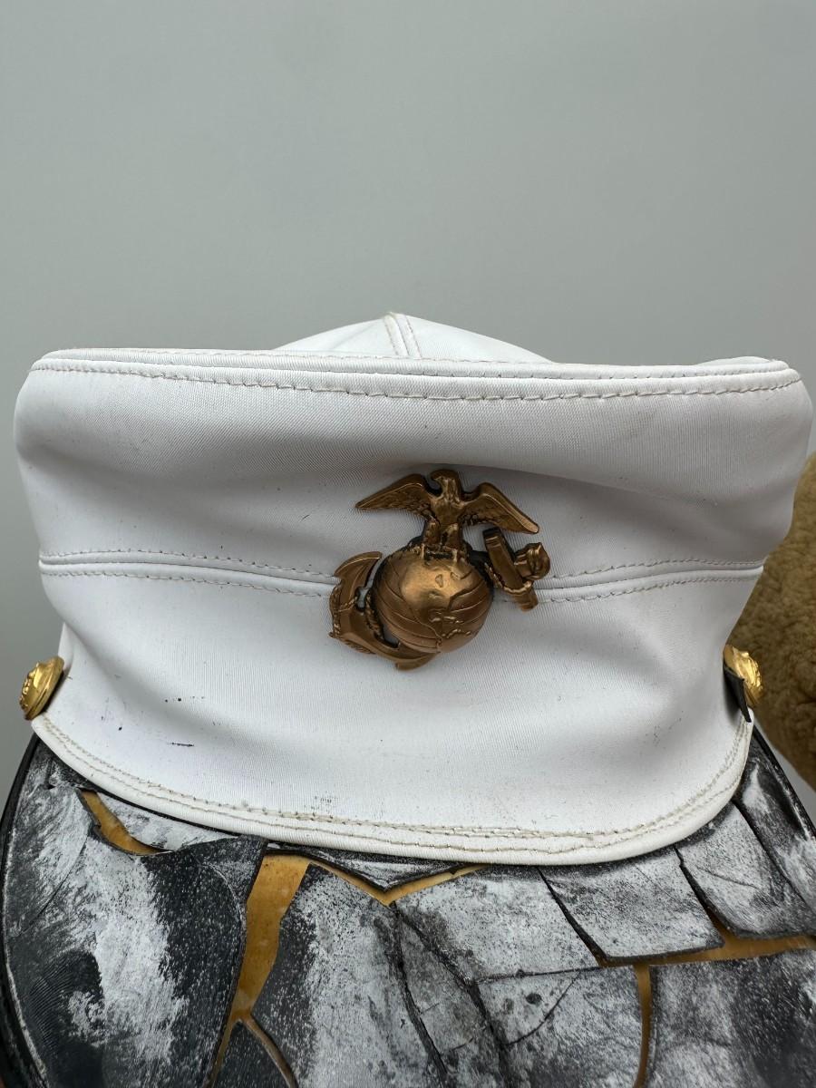 VINTAGE U.S. MARINE CORPS DRESS CAP AND WWII LAMBSKIN HELMET LINER