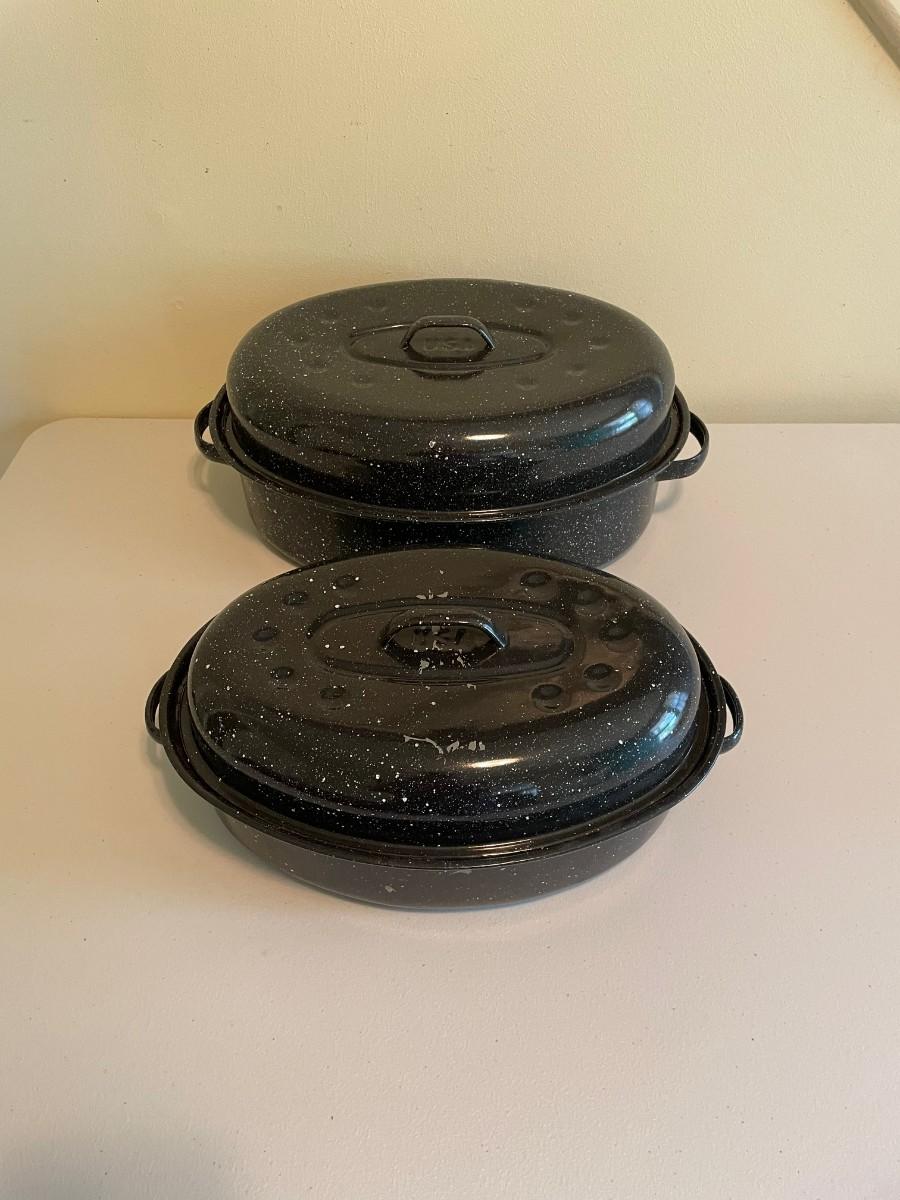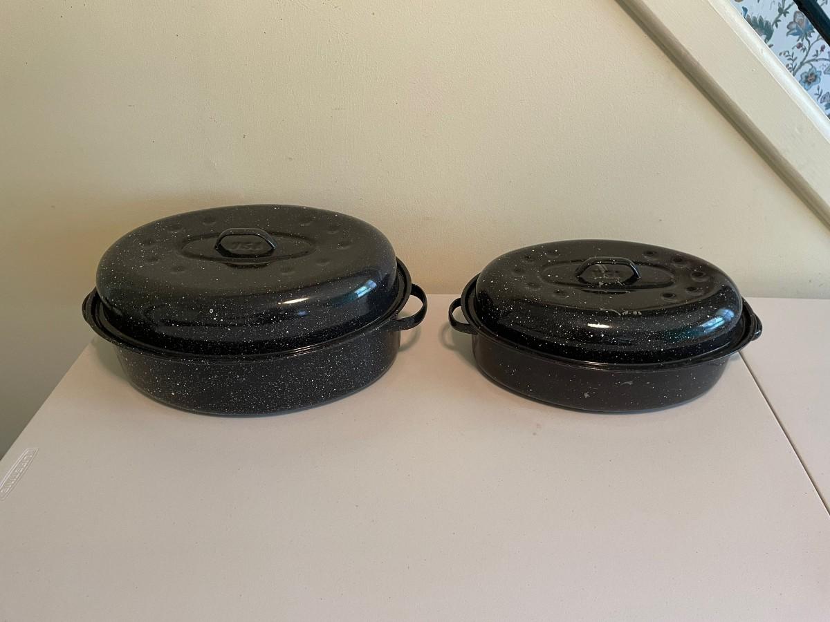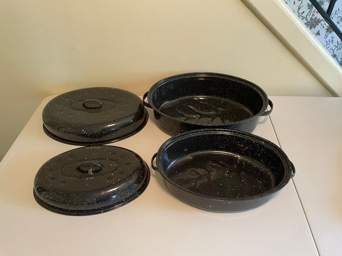 Vintage USA Lightweight Metal Roasting Pans w/ Lids